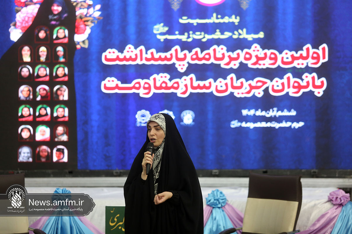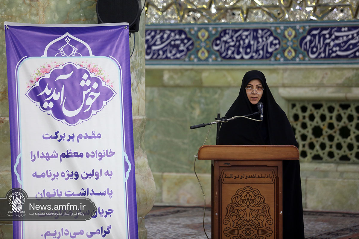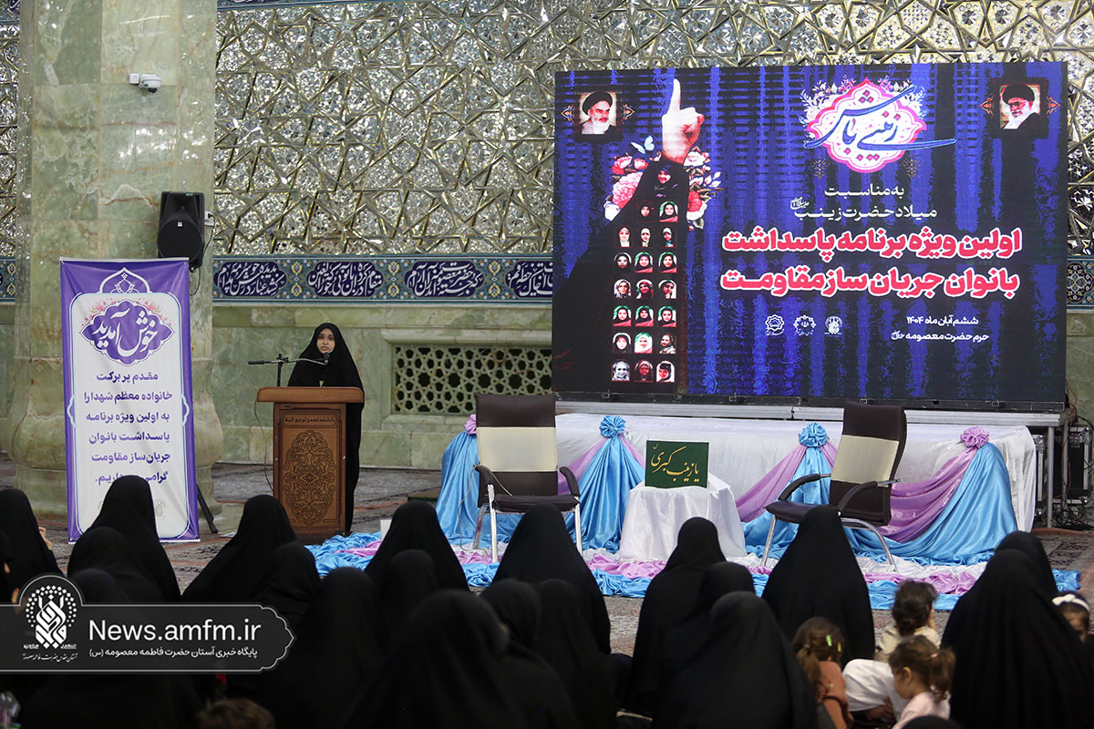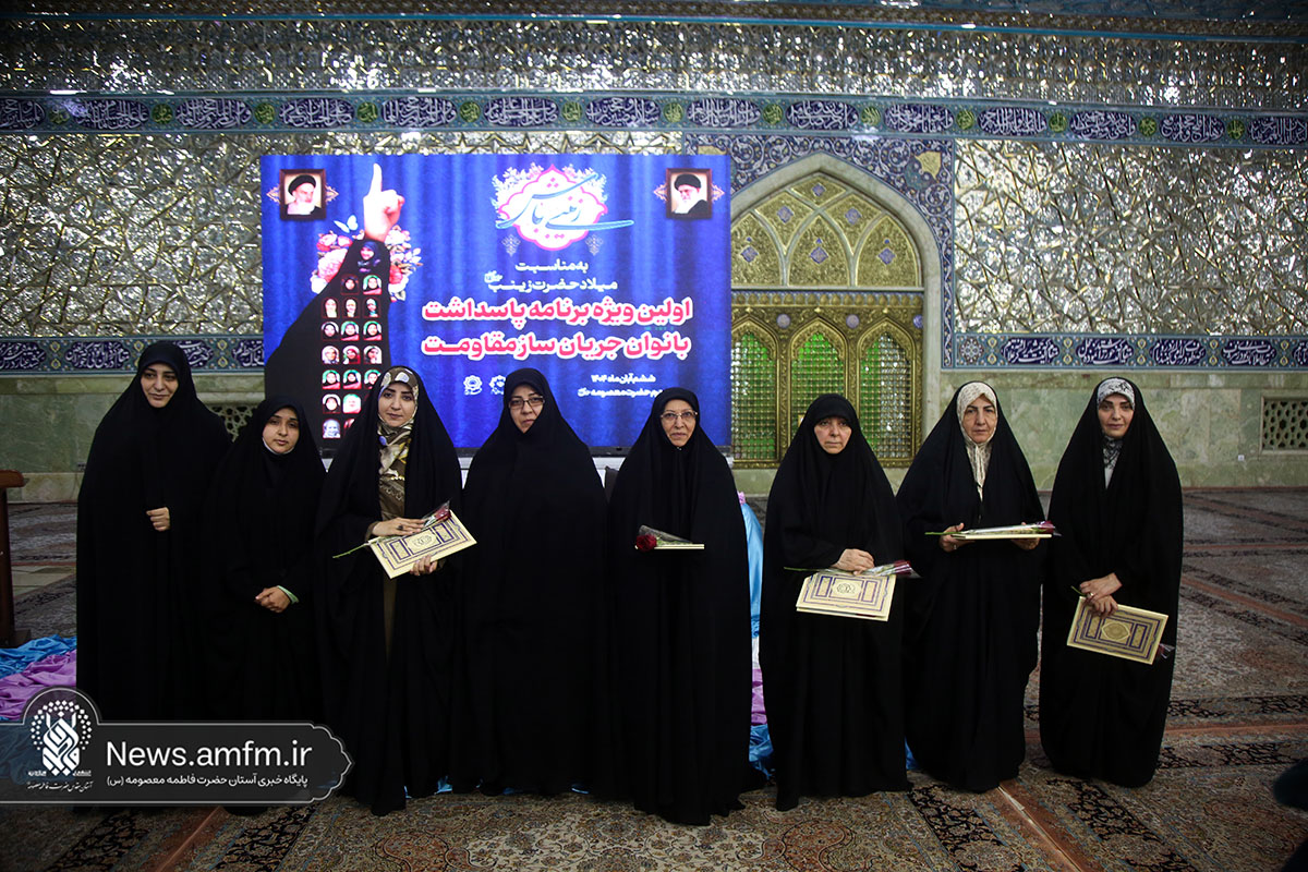 آئین پاسداشت بانوان جریان ساز مقاومت در ایام میلاد باسعادت عقیله بنی هاشم حضرت زینب کبری (س) امروز در حرم مطهر حضرت فاطمه معصومه (س) برگزار و در آن از مادران و همسران شهدا از جمله همسر سردار شهید محمدسعید ایزدی و مادر شهید سید امیر حسین فقهی تجلیل و قدردانی شد.