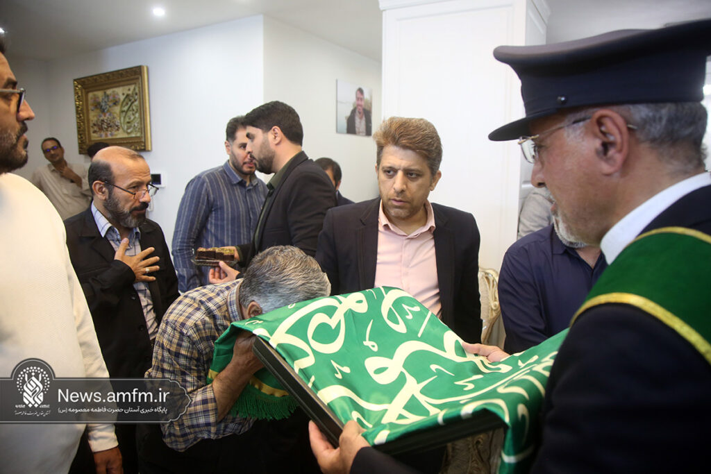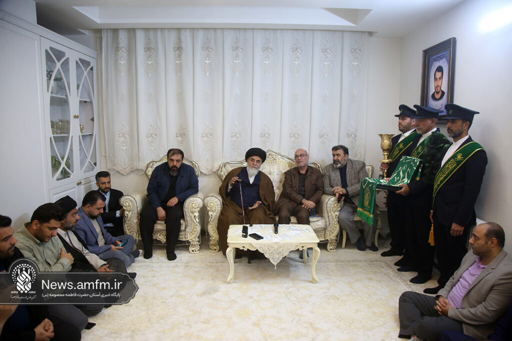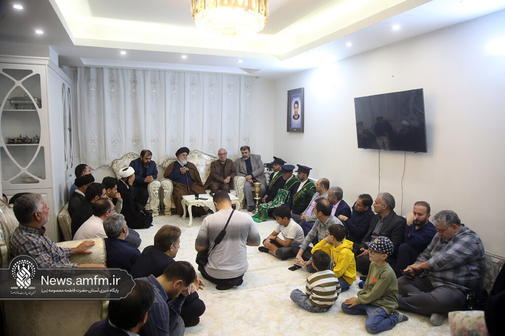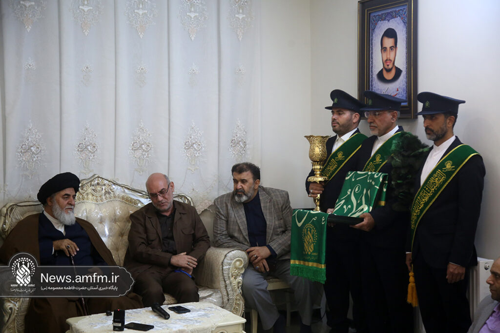 به گزارش پایگاه خبری آستان مقدس حضرت فاطمه معصومه سلام الله علیها، جمعی از خادمان حرم مطهر حضرت فاطمه معصومه سلام الله علیها به مناسبت ولادت باسعادت حضرت زینب کبری سلاماللهعلیها، با حضور در منزل شهید سعید کریمی از شهدای مدافع حرم از سه همسر شهید مدافع حرم تجلیل کردند.