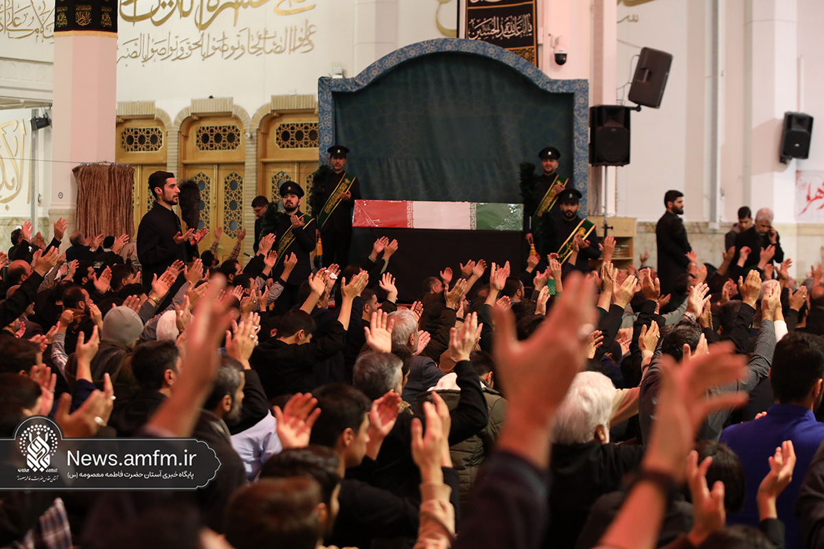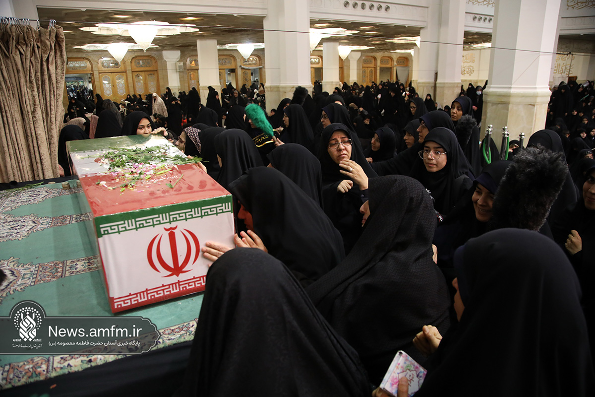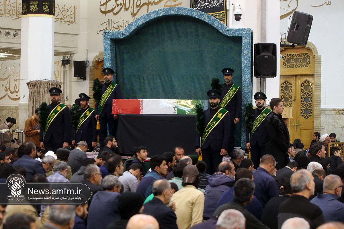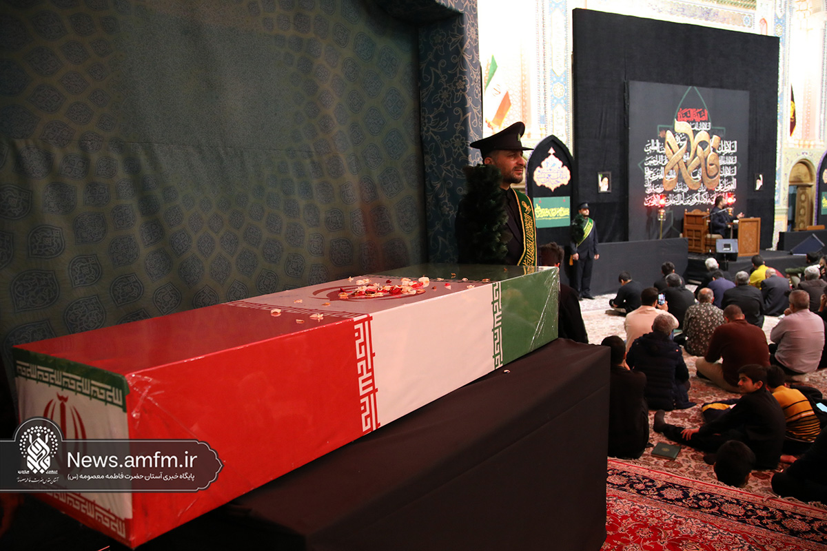 مراسم وداع با پیکر دو شهید گمنام دفاع مقدس امشب همزمان با آیین سوگواری شهادت حضرت زهرا سلام الله علیها با سخنرانی حجتالاسلام والمسلمین پناهیان و مدیحهسرایی حسن شالبافان در حرم مطهر حضرت فاطمه معصومه سلام الله علیها برگزار شد.