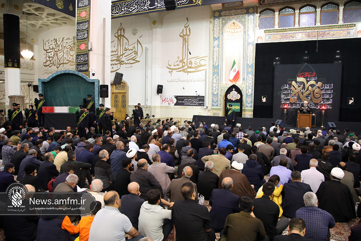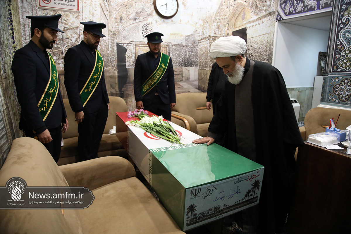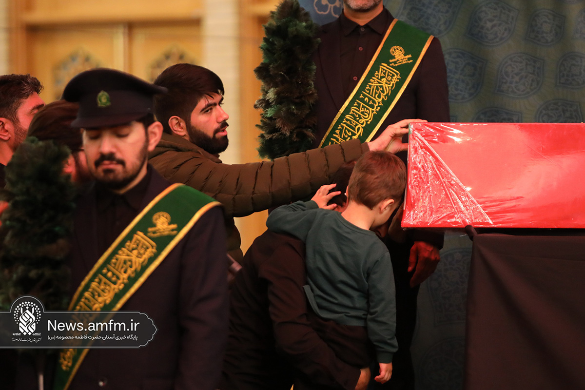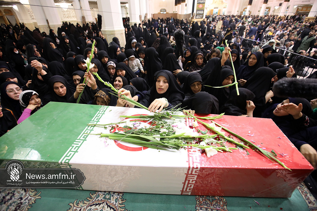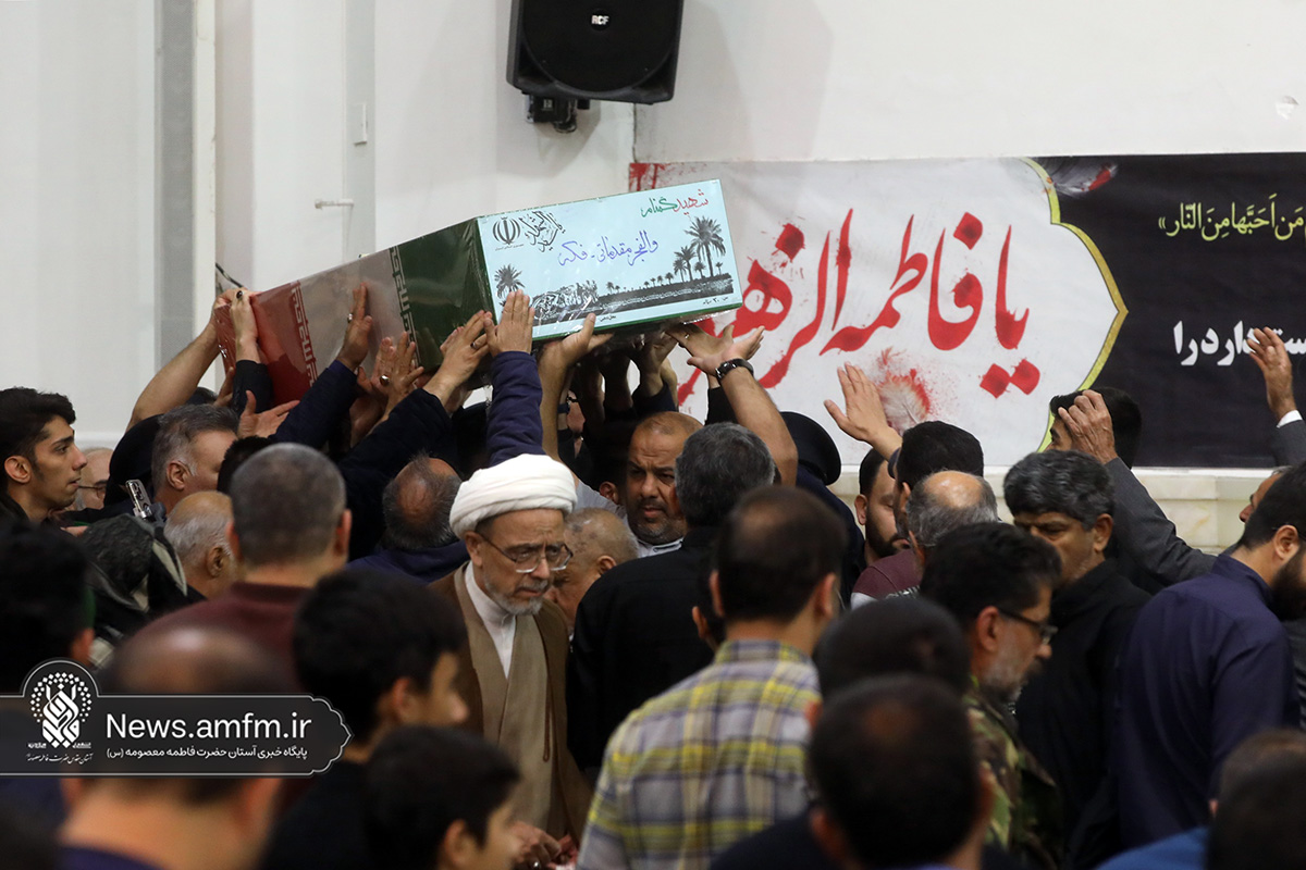 مراسم وداع با پیکر دو شهید گمنام دفاع مقدس امشب همزمان با آیین سوگواری شهادت حضرت زهرا سلام الله علیها با سخنرانی حجتالاسلام والمسلمین پناهیان و مدیحهسرایی حسن شالبافان در حرم مطهر حضرت فاطمه معصومه سلام الله علیها برگزار شد.