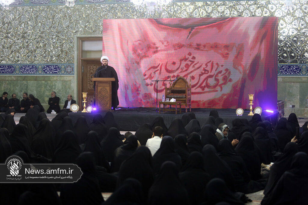 مراسم عزاداری ایام فاطمیه ویژه بانوان با سخنرانی حجت الاسلام فلاحی مدیرعالی حرم مطهر و با شعرخوانی شاعران اهل بیت و مرثیه سرایی نریمان پناهی در شبستان حضرت زهرا (س) حرم مطهر حضرت فاطمه معصومه (س) برگزار شد.