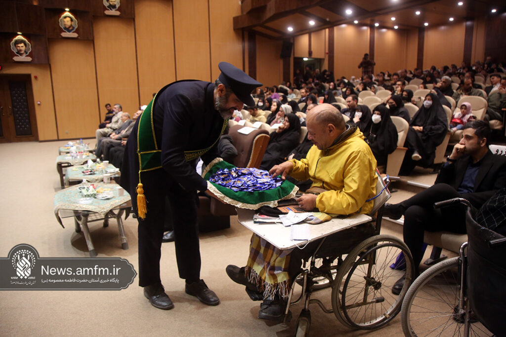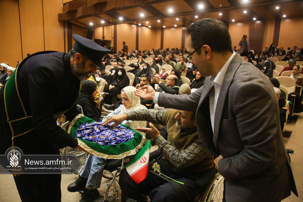 آیین گرامیداشت معلولان استان قم امروز 12 آذر به مناسبت روز جهانی معلولان با حضور خادمان حرم مطهر بانوی کرامت به همراه پرچم گردانی و توزیع متبرکات آستان مقدس حضرت فاطمه معصومه سلاماللهعلیها در سالن اجتماعات باغ موزه دفاع مقدس قم برگزار شد.