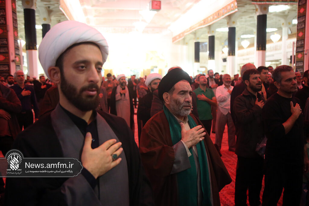مراسم عزاداری ظهر سالروز وفات حضرت حضرت ام البنین سلام الله علیها با سخنرانی حجت الاسلام والمسلمین سید حسین مؤمنی و مداحی عباس حیدرزاده در شبستان امام خمینی(ره) حرم مطهر بانوی کرامت برگزار شد.