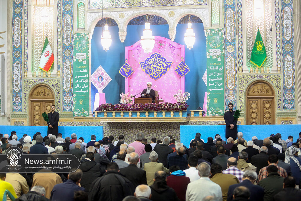 حرم مطهر حضرت فاطمه معصومه سلاماللهعلیها در شب میلاد بانوی دو عالم حضرت فاطمه زهرا سلام الله علیها، میزبان مراسم باشکوهی با حضور گسترده و پرشور مردم و با سخنرانی حجتالاسلام والمسلمین علیرضا پناهیان، مولودیخوانی مهدی رسولی و اجرای سرود توسط گروه شمیم رضوان در فضایی سرشار از شادی و معنویت بود.