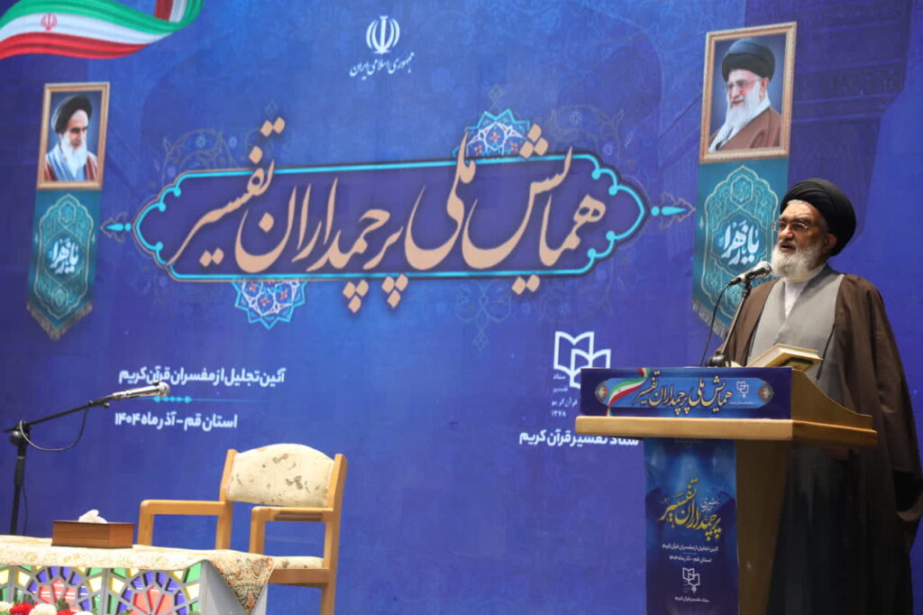 وی با تقدیر از زحمات حجت الاسلام والمسلمین قرائتی برای تفسیر قرآن کریم، اظهار داشت: ۳۵۰ نفر از ائمه جمعه سراسر کشور درس تفسیر قرآن دارند و تعداد درس هاس تفسیر قرآن کریم در حوزه های علمیه و مساجد و مراکز دینی افزایش پیدا کرده است که این ها از برکات نظام مقدس جمهوری اسلامی ایران است.