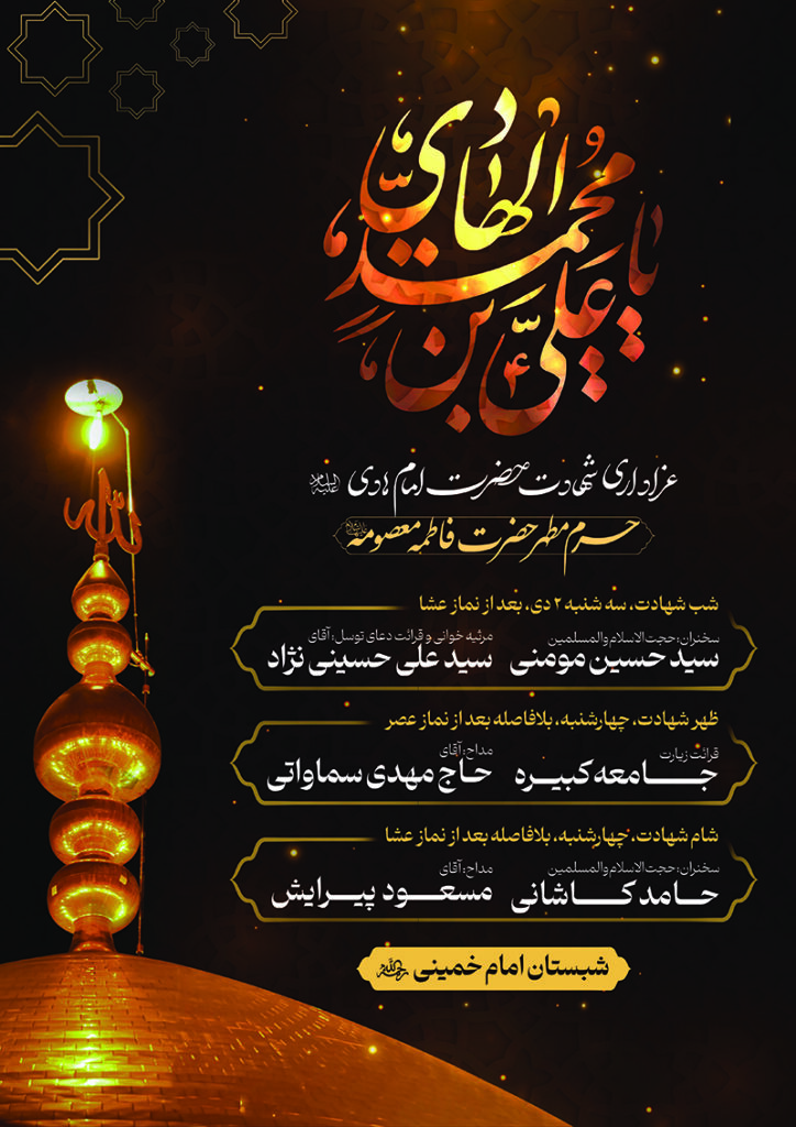 همزمان با فرا رسیدن شب شهادت امام هادی(ع)، حرم مطهر حضرت فاطمه معصومه(س) غرق در اندوه و معنویت شد؛ صحنها و شبستانها با حضور زائران و عزاداران، میزبان مراسم سوگواری، مرثیه خوانی و حضور دسته های عزاداری امام دهم بود.