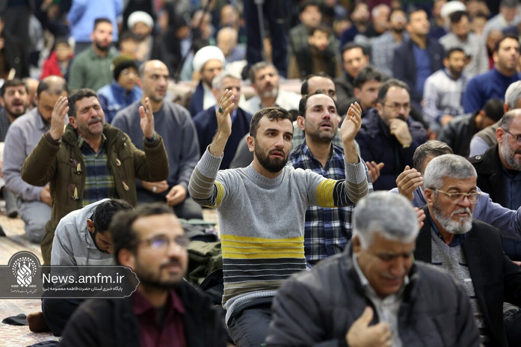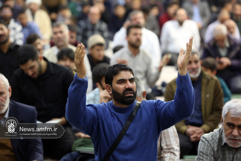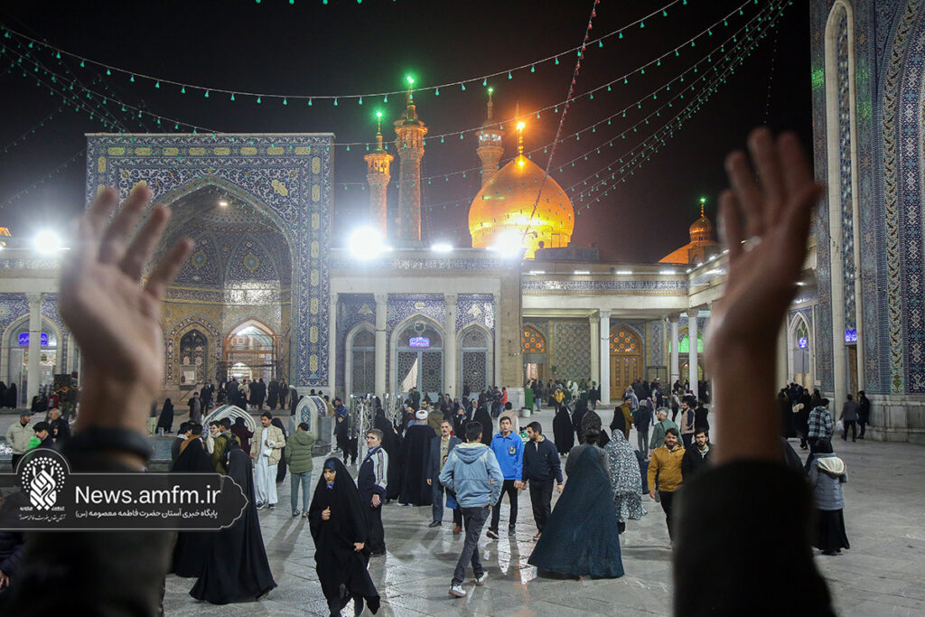 دست‌های رو به آسمان زائران حرم بانوی کرامت در شب آرزوها