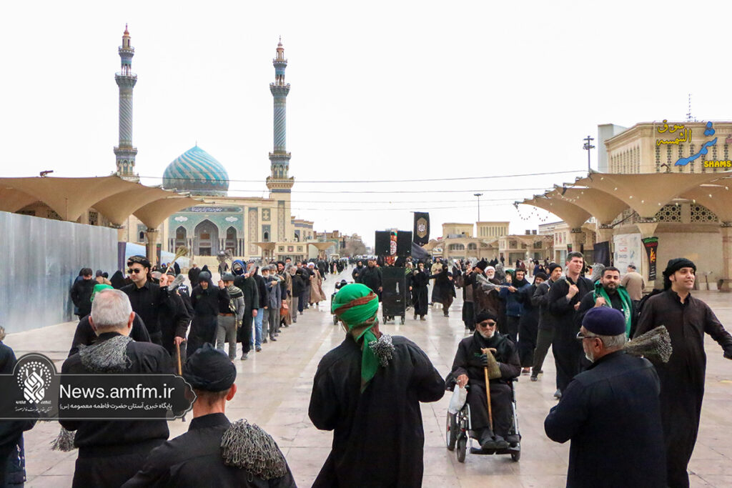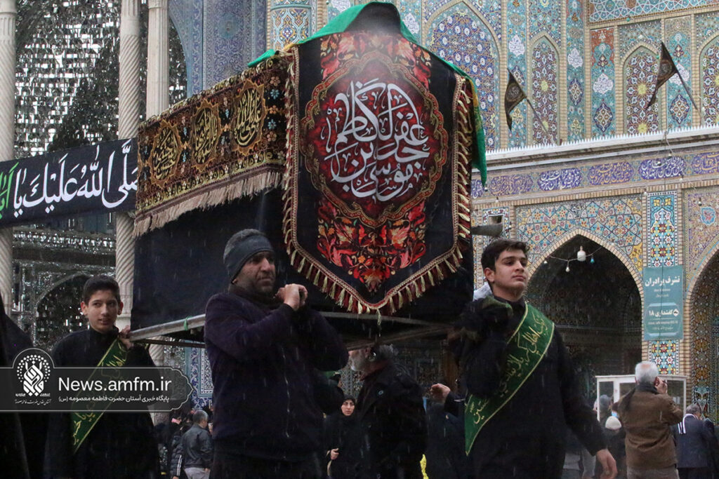 دستههای عزاداری در سالروز شهادت امام موسی کاظم علیه السلام با حضور در حرم مطهر حضرت فاطمه معصومه سلام الله علیها به عزاداری و عرض ارادت پرداختند.