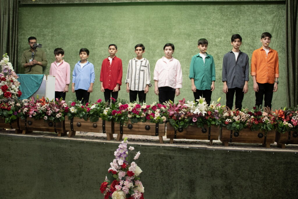 این مراسم که با استقبال پرشور کودکان و نوجوانان همراه بود در قالب بخش های متنوع و بانشاطی نظیر اجرای سرود و نمایش، عرض ارادت به محضر پیامبر اکرم (ص)، استکبار ستیزی و تبریک عید مبعث به رهبر معظم انقلاب اسلامی اجرا شد.
