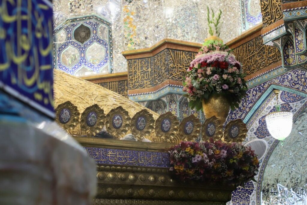 تعویض گلهای ضریح مطهر بانوی کرامت در شام رحلت آن حضرت