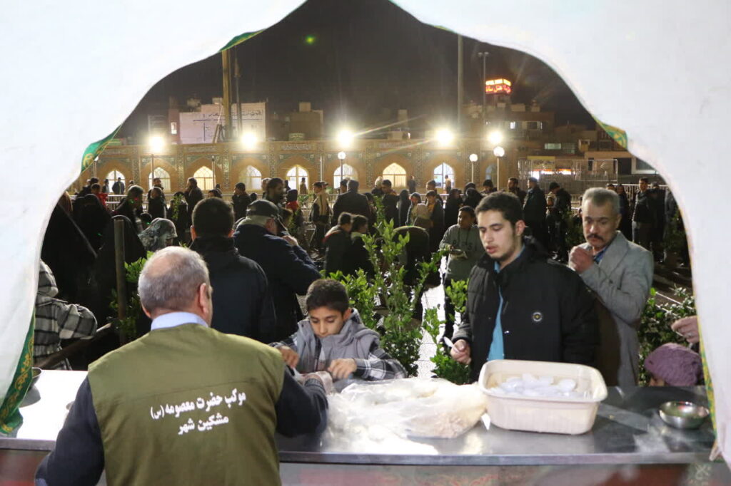 خادمان ایستگاه های صلواتی حرم مطهر حضرت فاطمه معصومه سلام الله علیها در شب میلاد امام زمان عجل الله تعالی فرجه الشریف خدمات متنوعی را به زائران و مجاوران ارائه کردند.