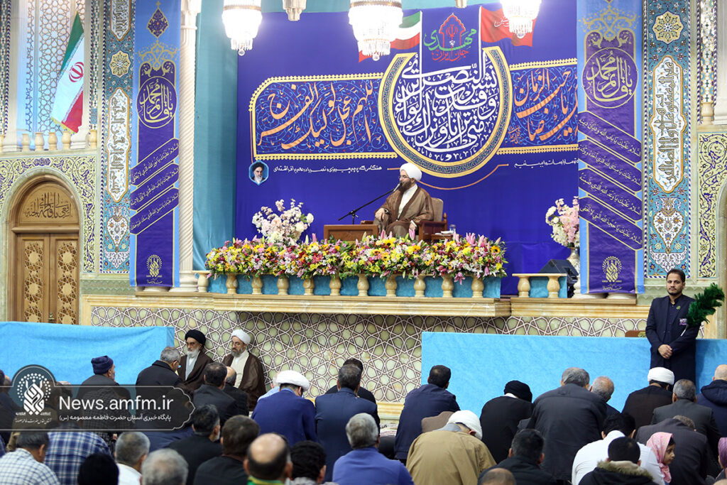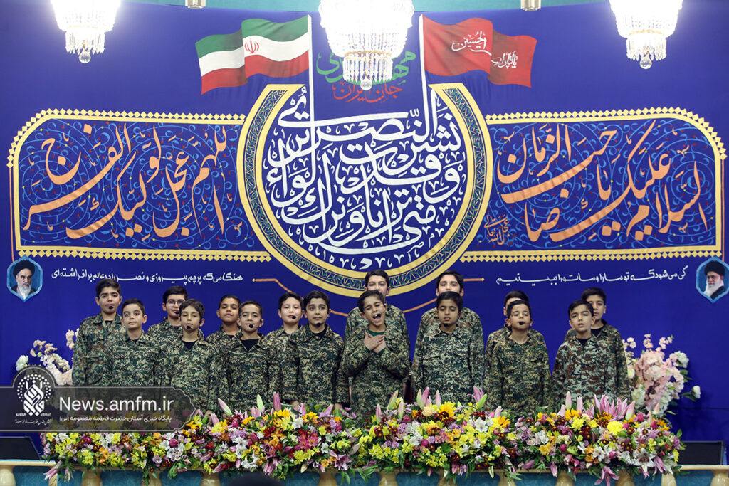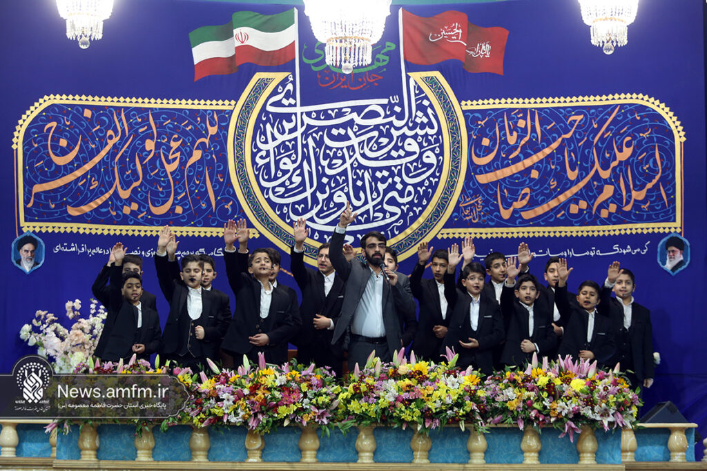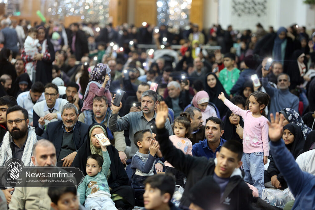 مراسم جشن شام میلاد امام زمان عجل الله فرجه الشریف با سخنرانی حجت الاسلام والمسلمین حاج علی اکبری و مولودی خوانی عباس حیدرزاده به همراه اجرای سرود و تواشیح در جمع بانشاط زائران حرم بانوی کرامت با حضور آیت الله سعیدی تولیت حرم مطهر برگزار شد.