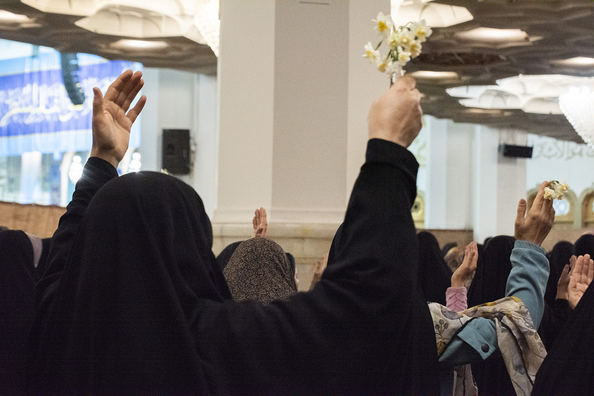 نمازگزاران حرم مطهر حضرت فاطمه معصومه سلام الله علیها در ظهر نیمه شعبان با قرائت دعای فرج، دست‌های دعا به سمت خدا دراز کرده و خاضعانه از او ظهور امام عصر عجل الله تعالی فرجه الشریف را طلب کردند.