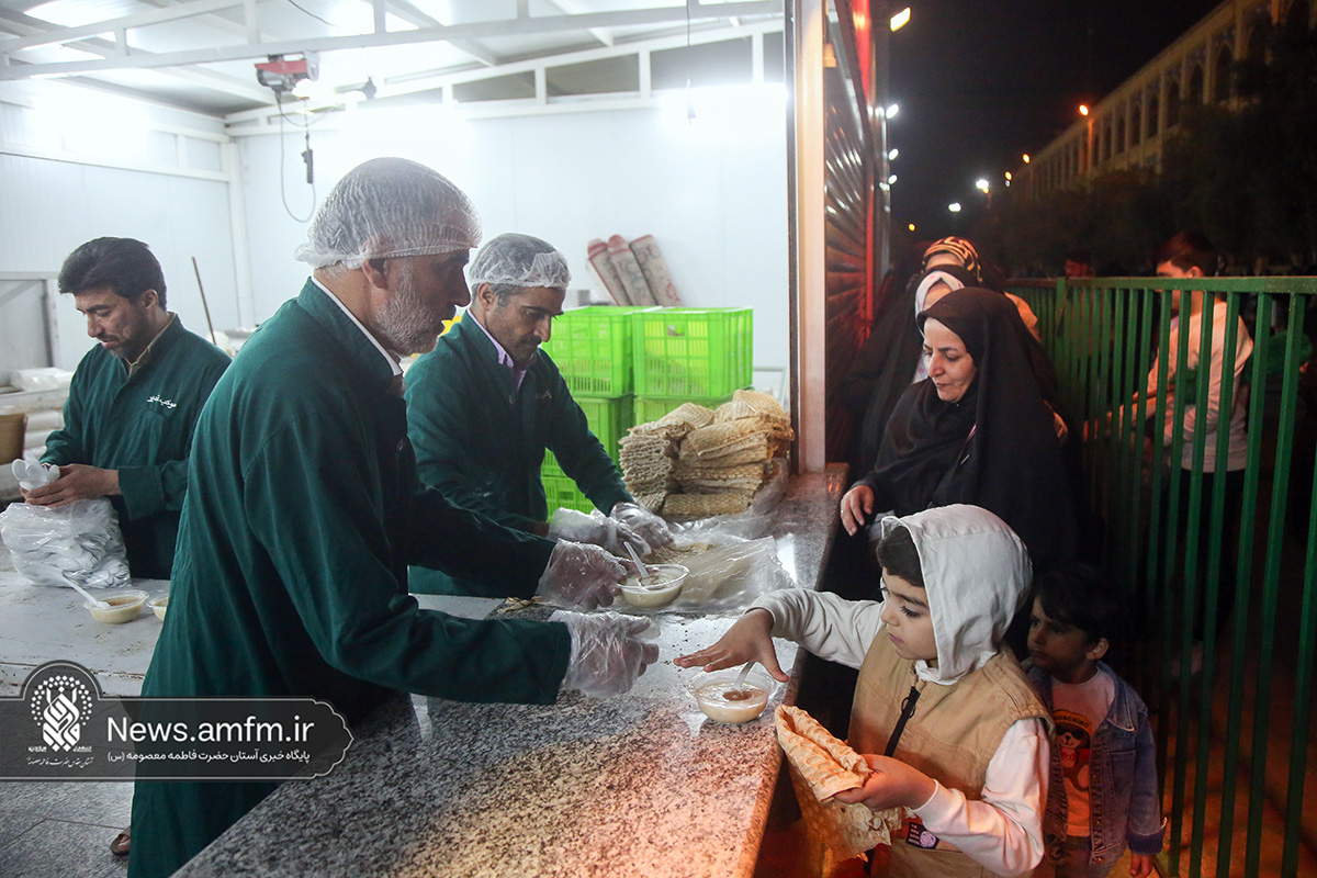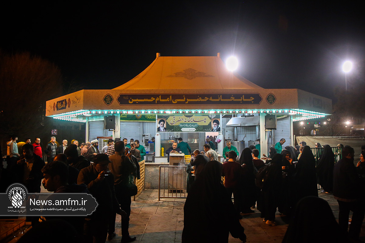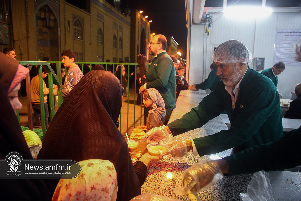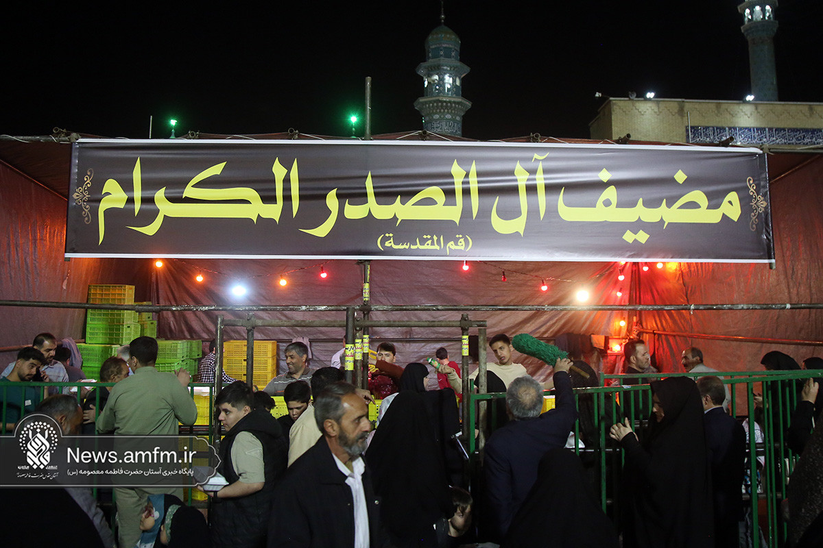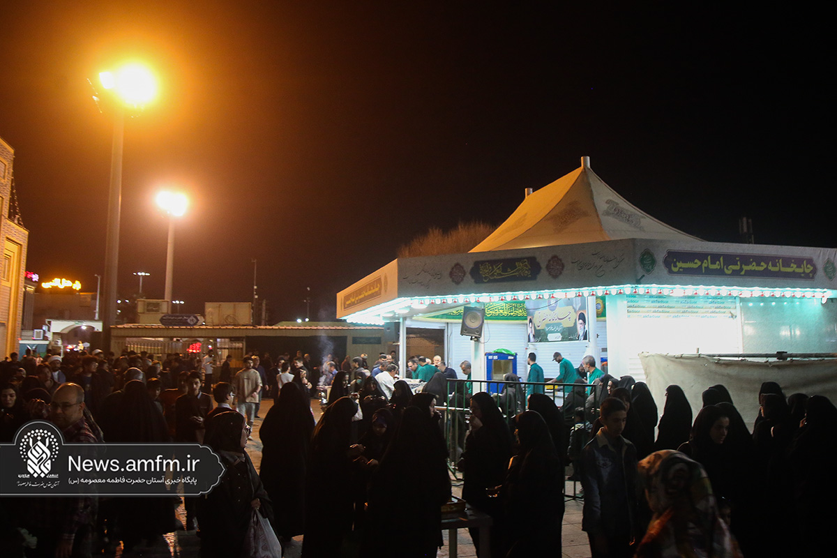 ایستگاه‌های صلواتی و چایخانه‌های حضرتی در صحن‌های حرم مطهر بانوی کرامت از ابتدای ماه مبارک رمضان میزبان زائران در وعده افطار هستند.