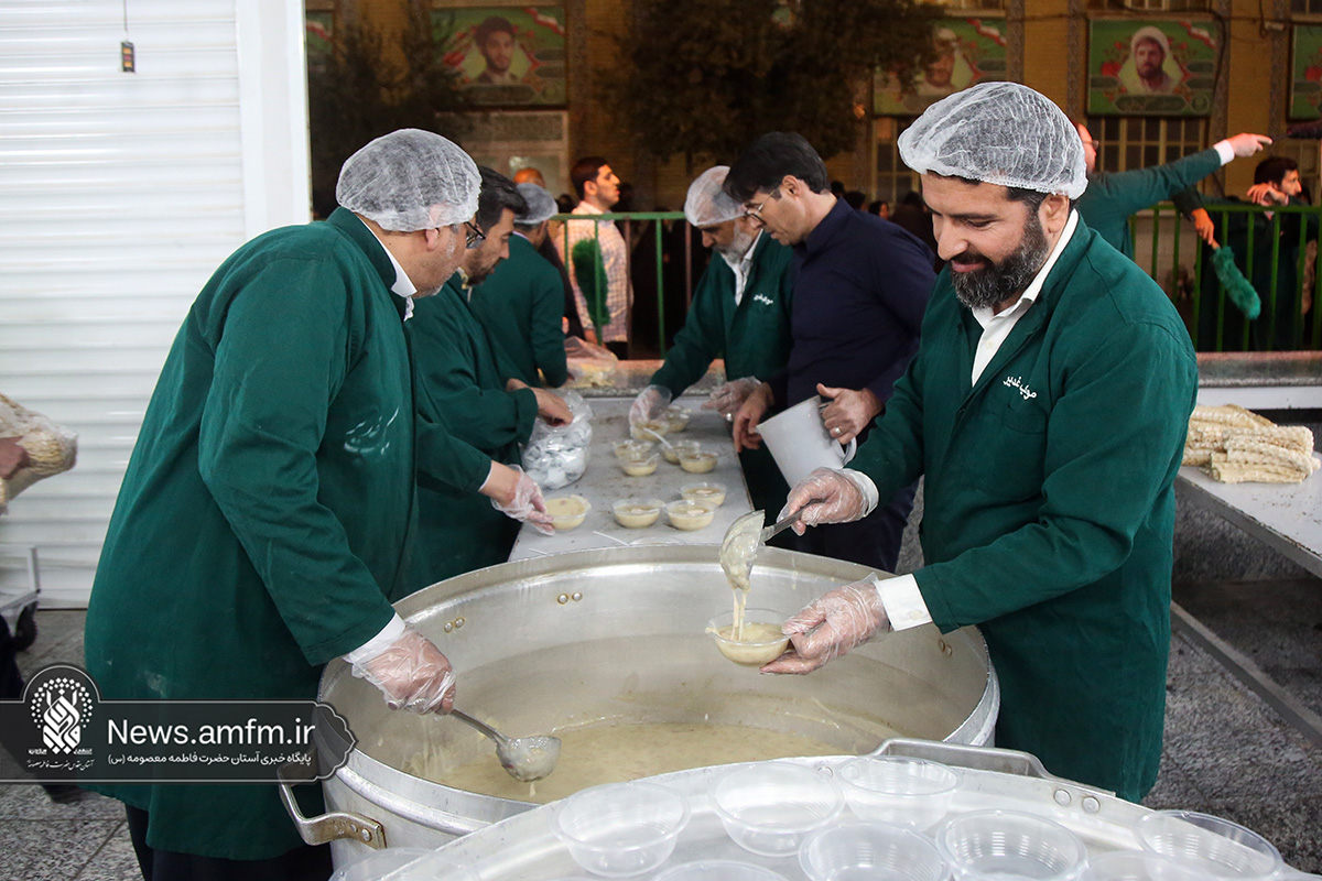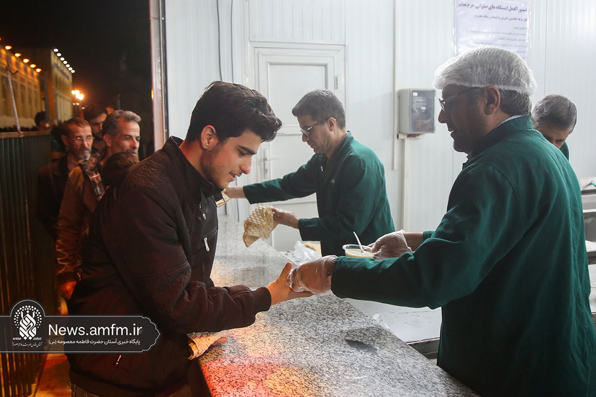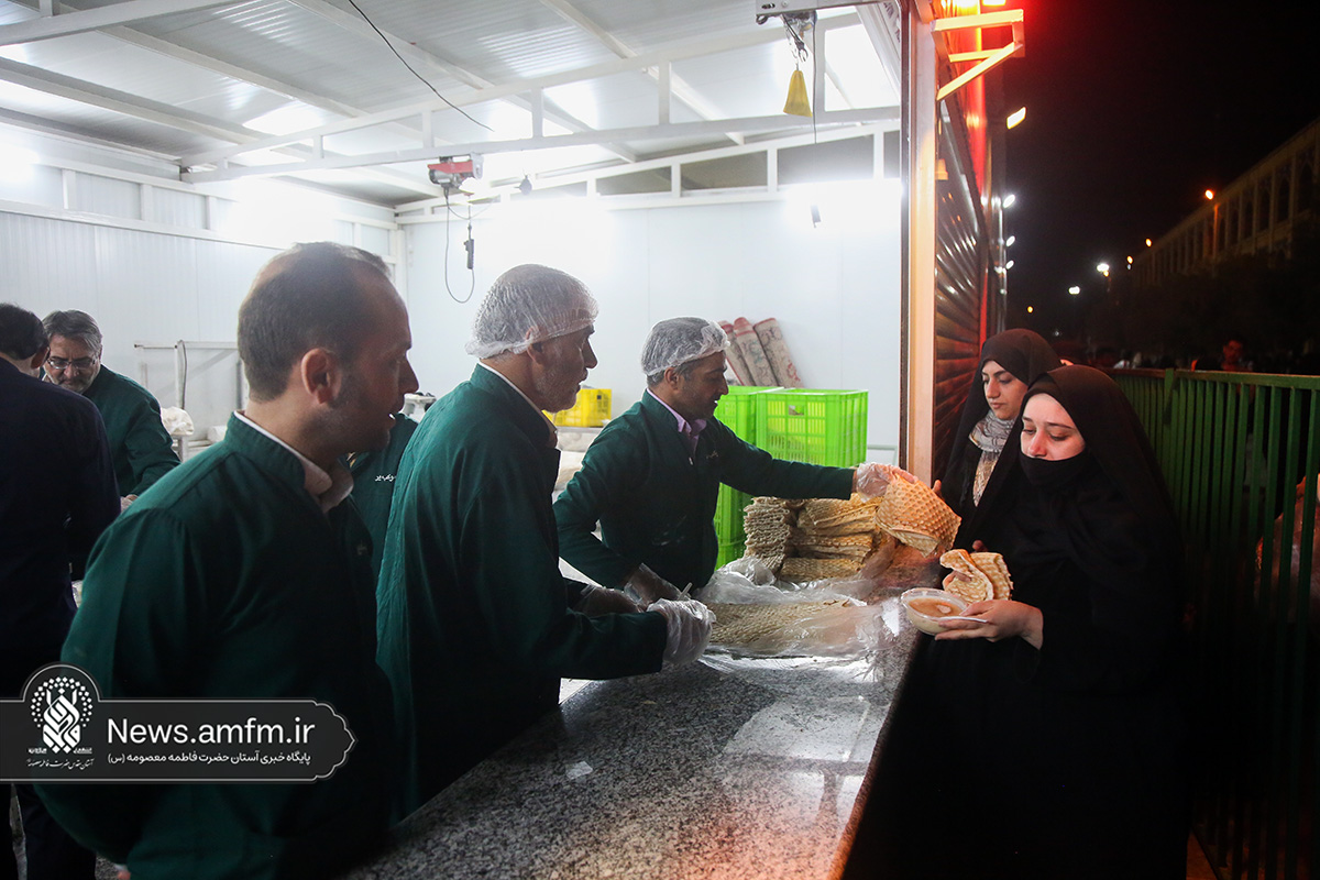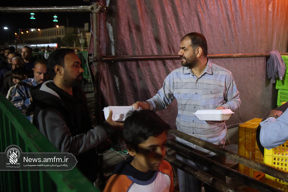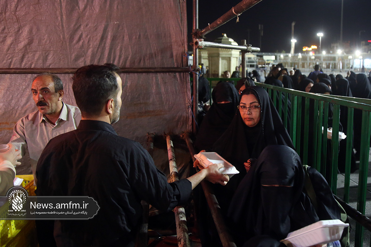 ایستگاه‌های صلواتی و چایخانه‌های حضرتی در صحن‌های حرم مطهر بانوی کرامت از ابتدای ماه مبارک رمضان میزبان زائران در وعده افطار هستند.