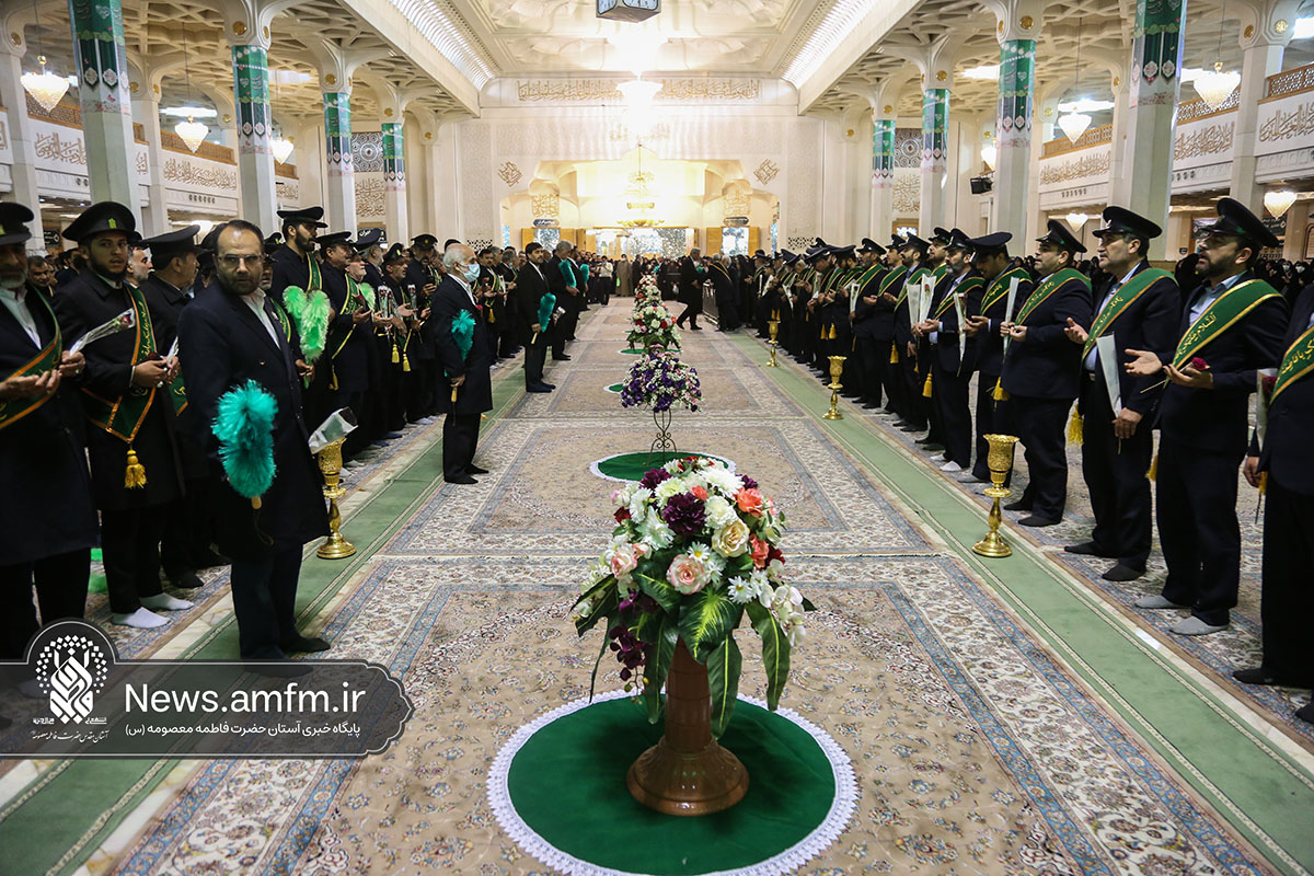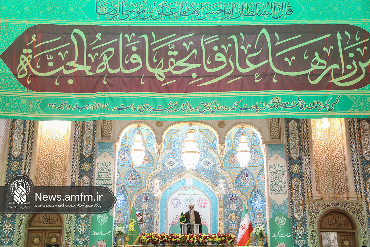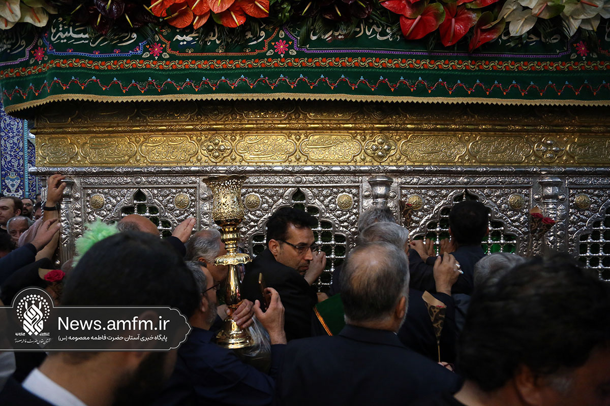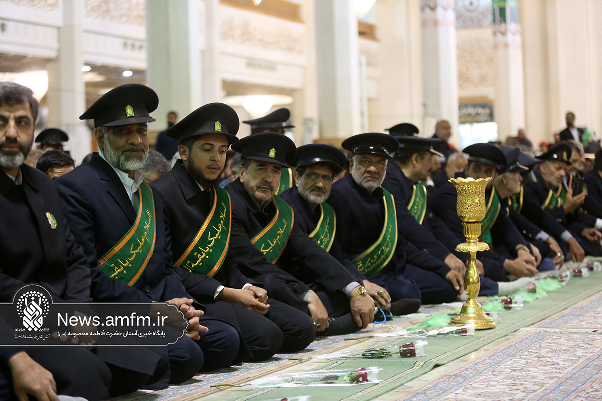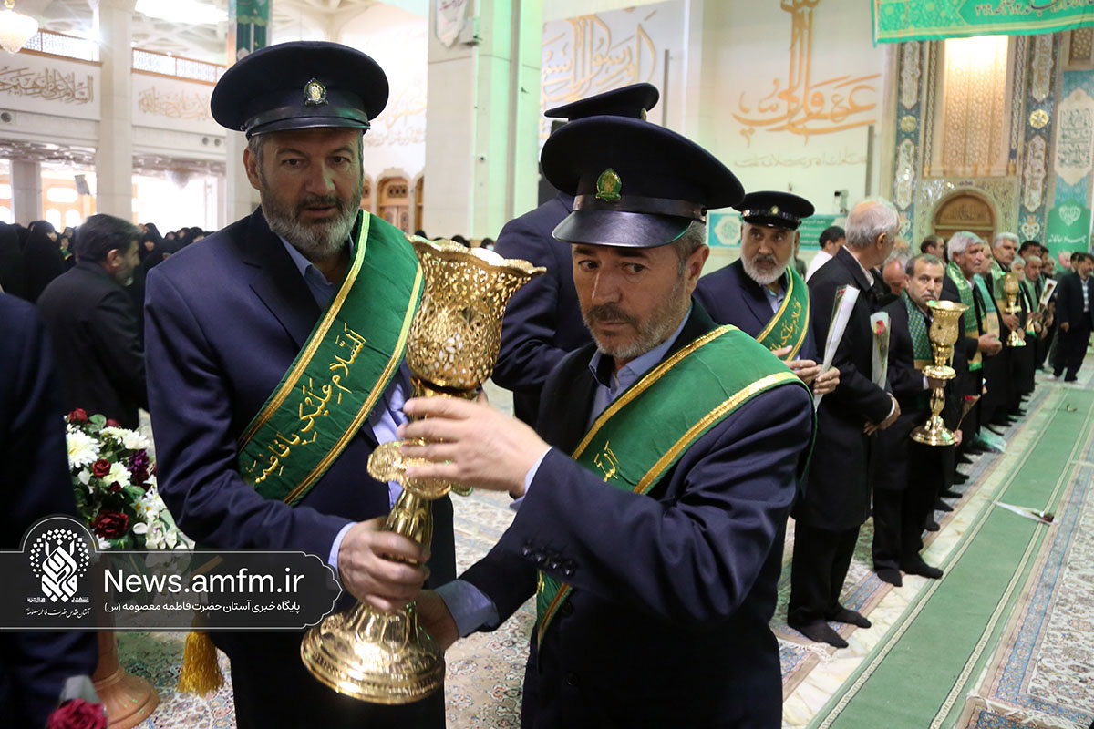 آیین معنوی خطبه خوانی خادمان حرم حضرت فاطمه معصومه سلام الله علیها صبح امروز با حضور انسیه خزعلی، معاون امور زنان و خانواده رئیس جمهور، حجت الاسلام والمسلمین مروی و جمعی از خادمان حرم امام رضا علیه السلام در حرم کریمه اهل بیت(س) برگزار شد.