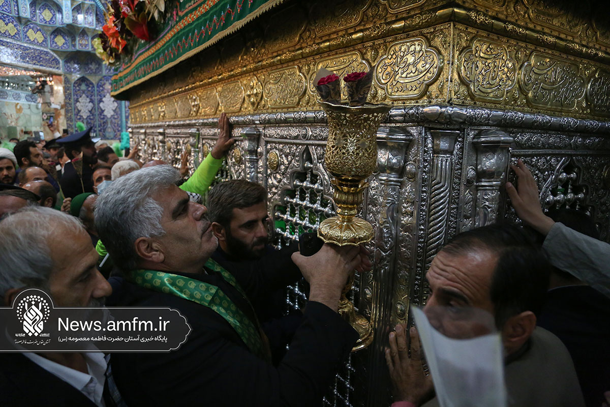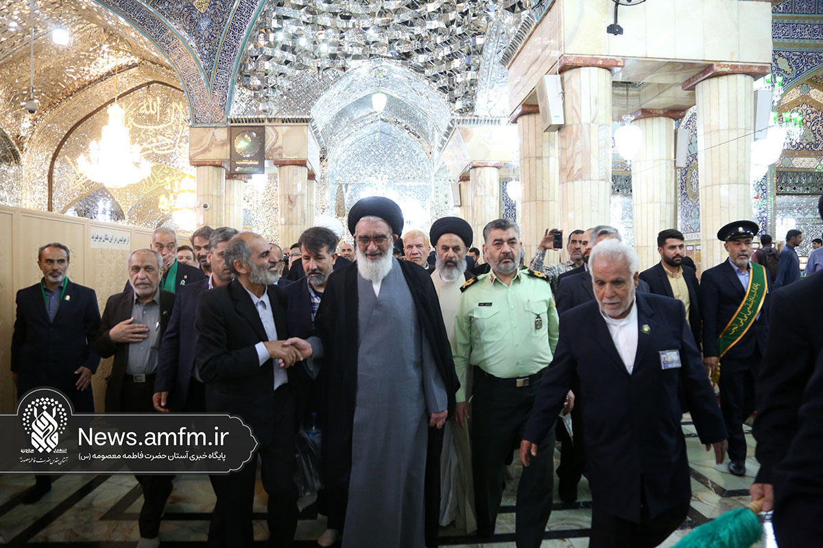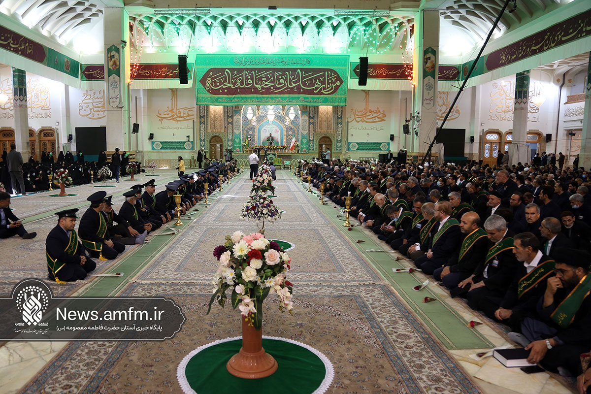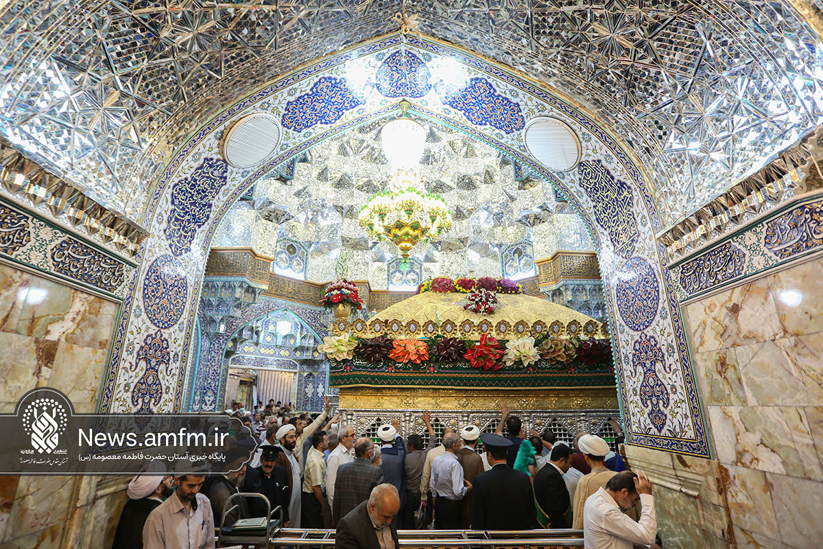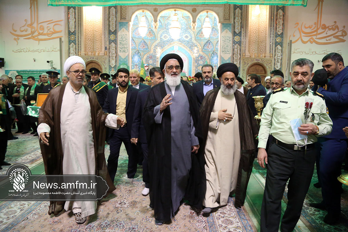 آیین معنوی خطبه خوانی خادمان حرم حضرت فاطمه معصومه سلام الله علیها صبح امروز با حضور انسیه خزعلی، معاون امور زنان و خانواده رئیس جمهور، حجت الاسلام والمسلمین مروی و جمعی از خادمان حرم امام رضا علیه السلام در حرم کریمه اهل بیت(س) برگزار شد.