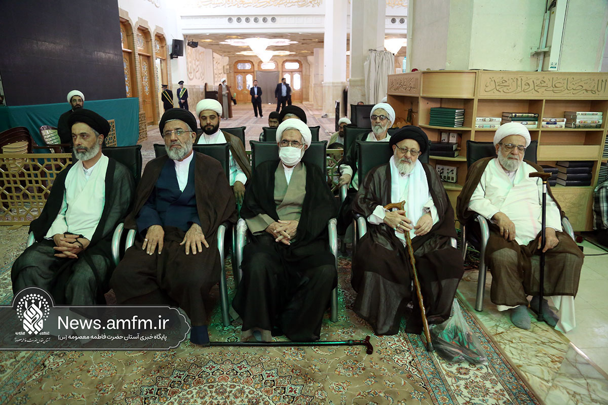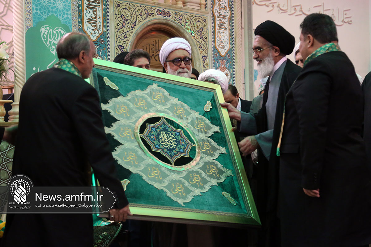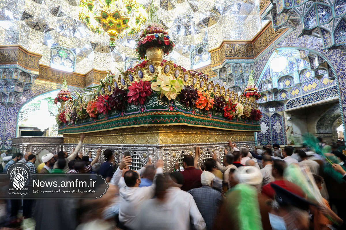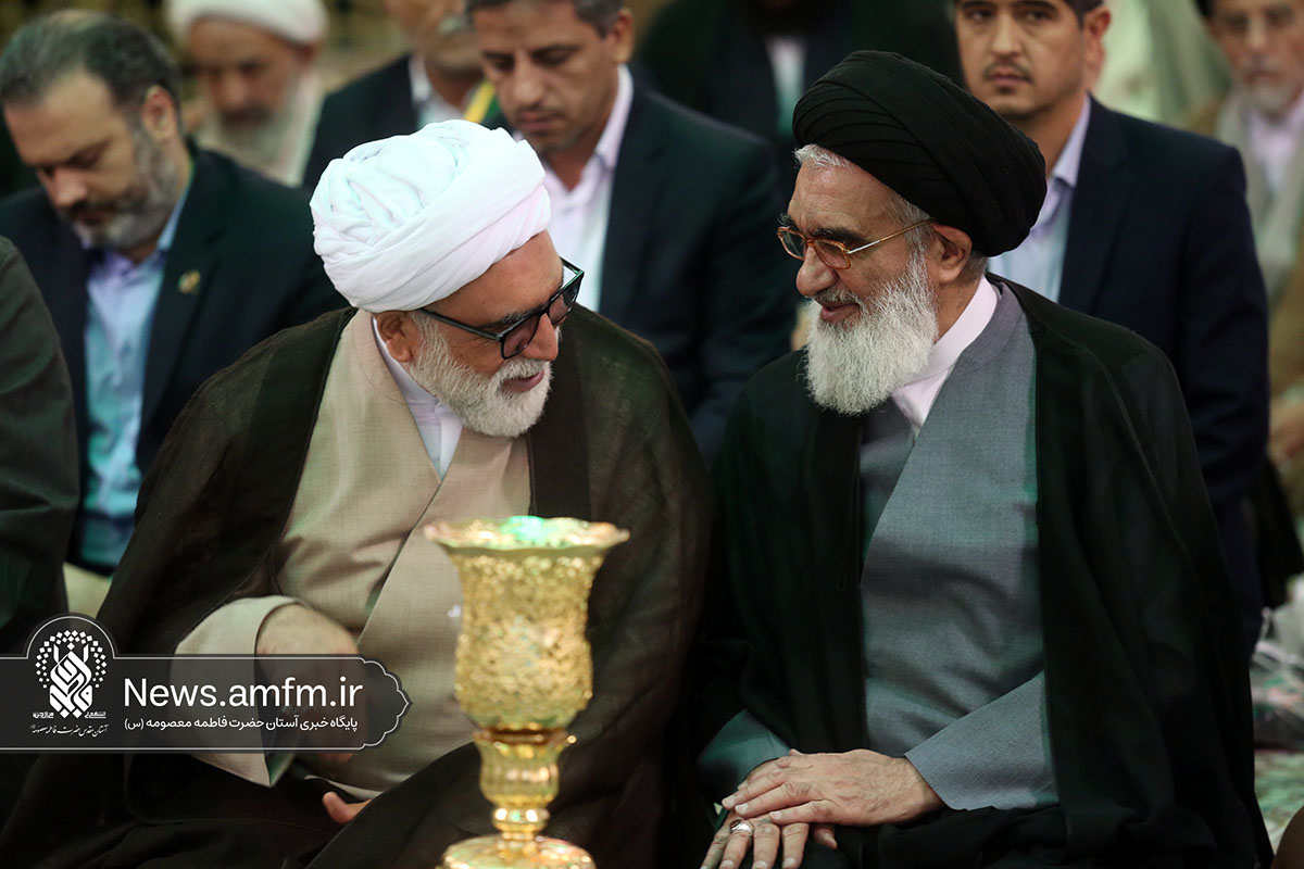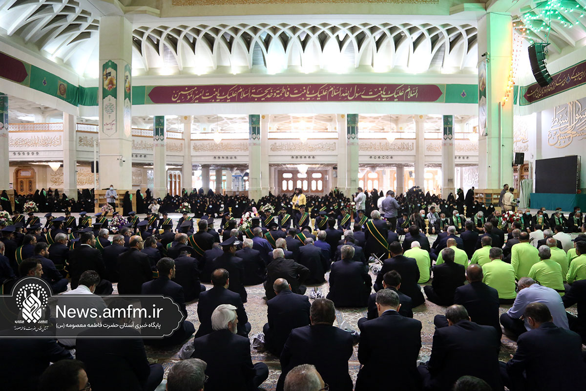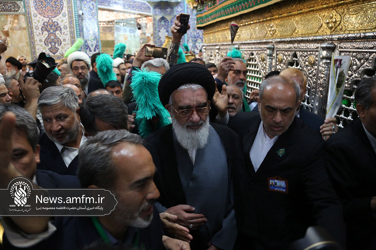 آیین معنوی خطبه خوانی خادمان حرم حضرت فاطمه معصومه سلام الله علیها صبح امروز با حضور انسیه خزعلی، معاون امور زنان و خانواده رئیس جمهور، حجت الاسلام والمسلمین مروی و جمعی از خادمان حرم امام رضا علیه السلام در حرم کریمه اهل بیت(س) برگزار شد.