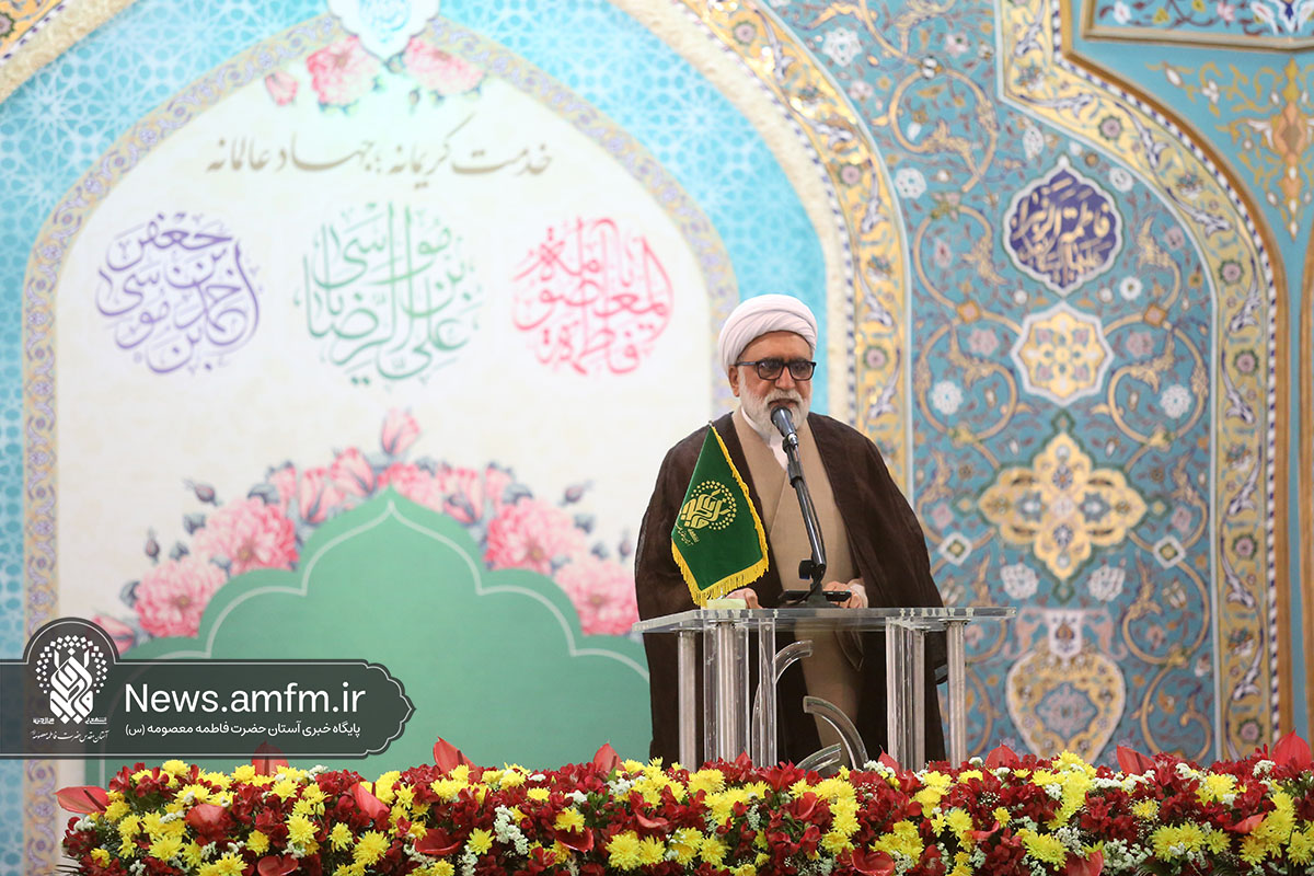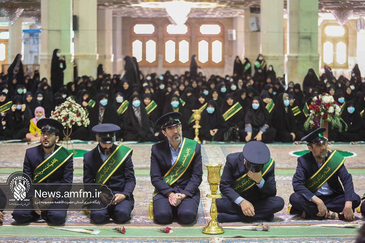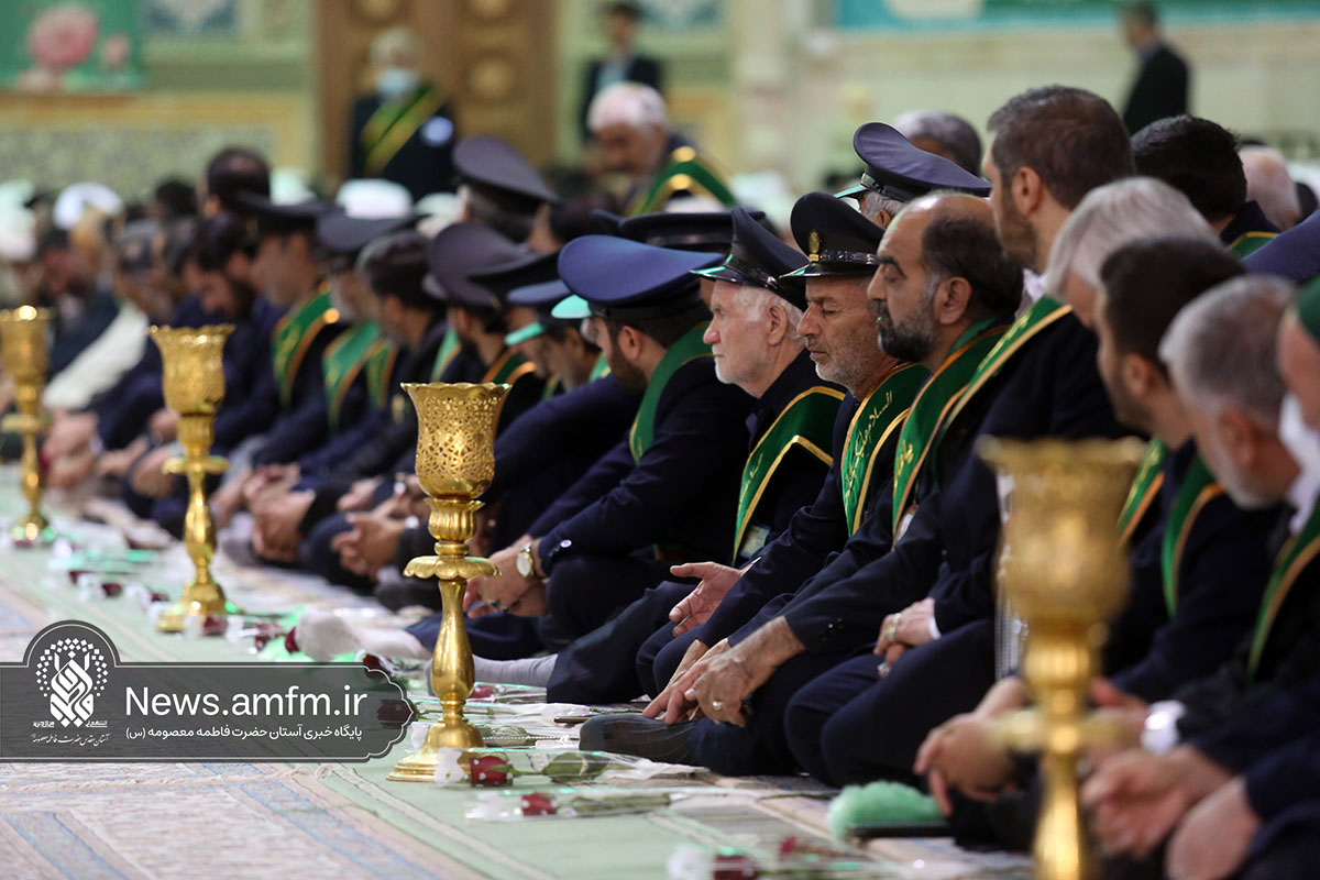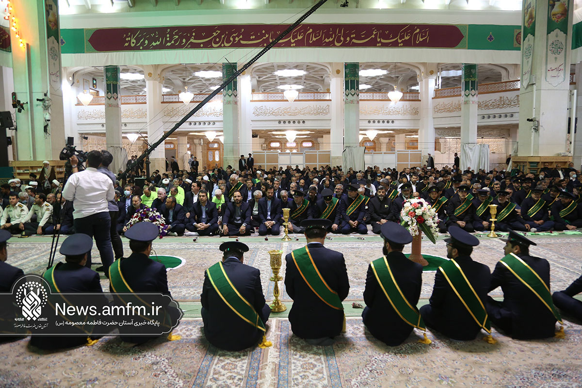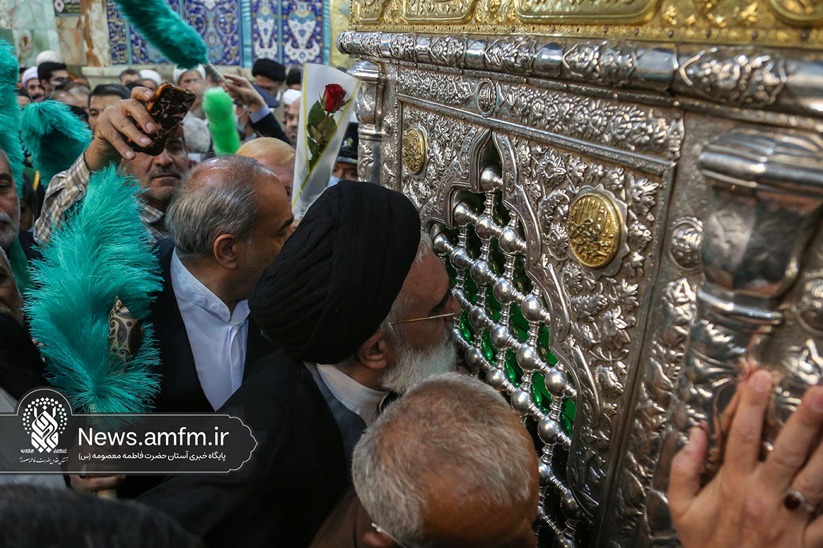 آیین معنوی خطبه خوانی خادمان حرم حضرت فاطمه معصومه سلام الله علیها صبح امروز با حضور انسیه خزعلی، معاون امور زنان و خانواده رئیس جمهور، حجت الاسلام والمسلمین مروی و جمعی از خادمان حرم امام رضا علیه السلام در حرم کریمه اهل بیت(س) برگزار شد.