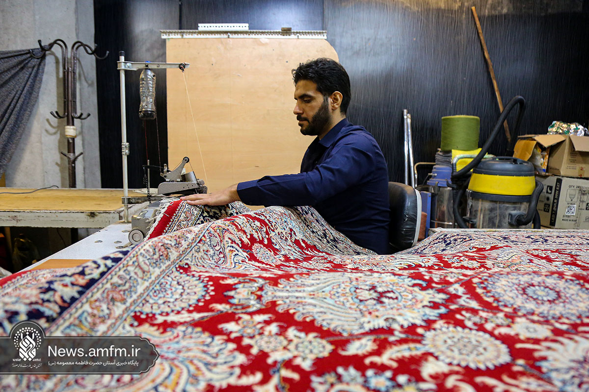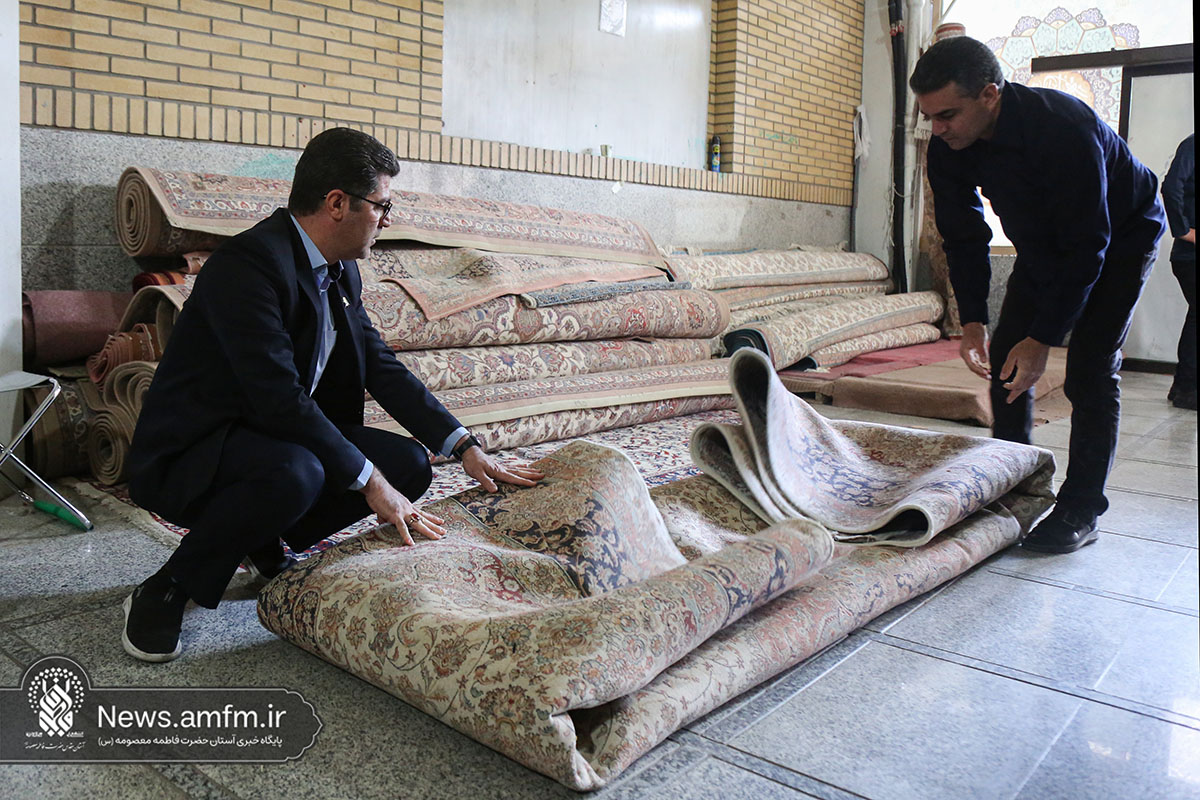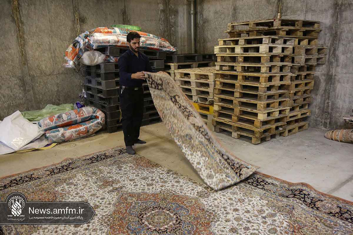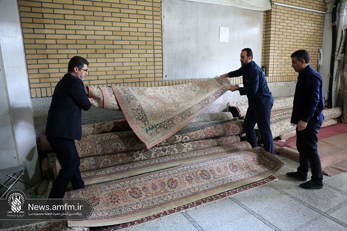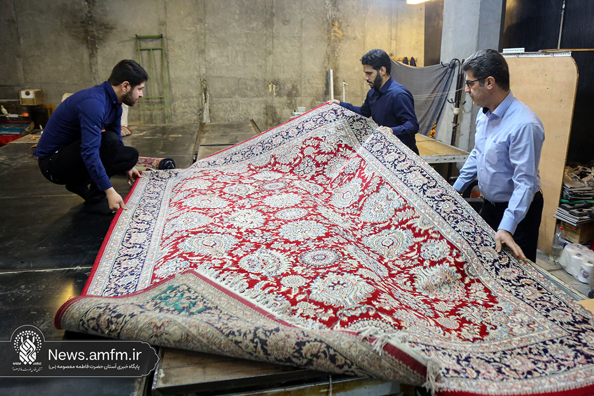 به گزارش پایگاه خبری آستان مقدس حضرت معصومه سلام الله علیها، محمد فخار مسئول واحد فرش آستان مقدس بانوی کرامت در گفتوگویی اظهار کرد: در مجموع این آستان مقدس بیش از ۴ هزار و ۵۰۰ تخته فرش ماشینی و بیش از ۴ هزار متر فرش دستباف دارد که خدمات تعمیر، رفوکاری و نگهداری آن به صورت پیوسته در حال انجام است.