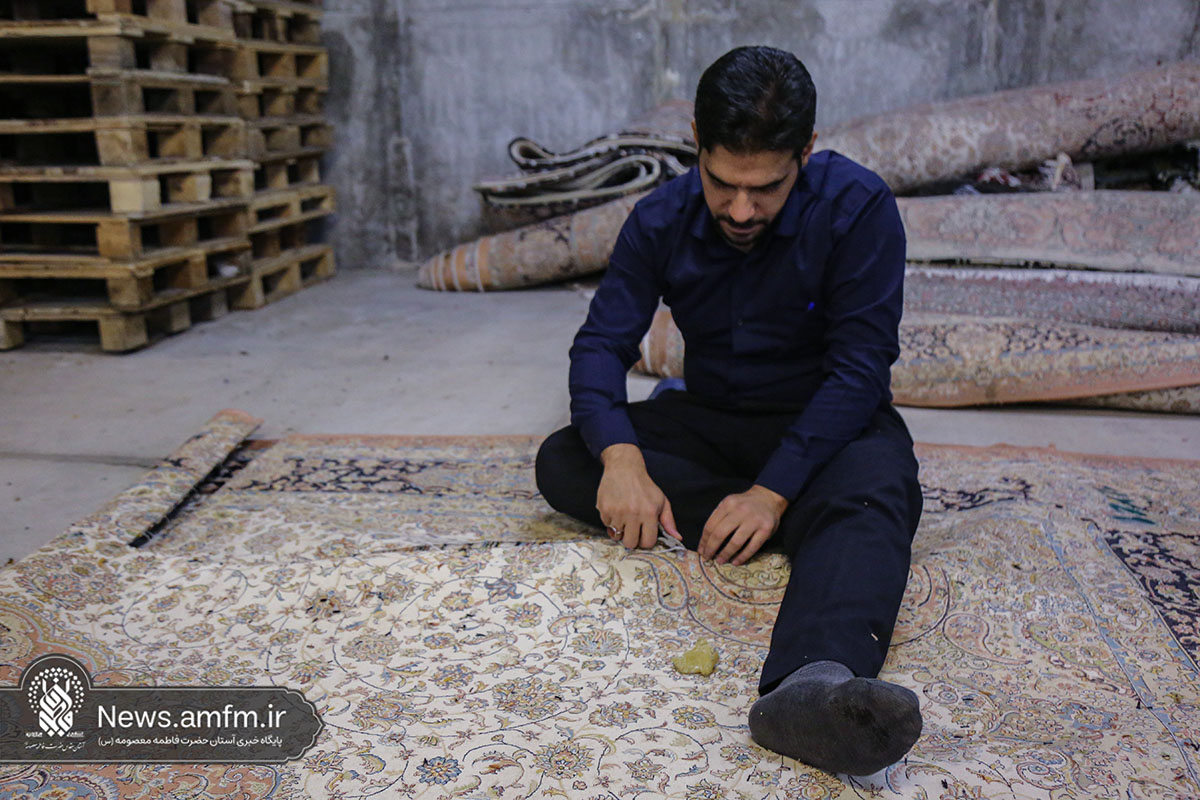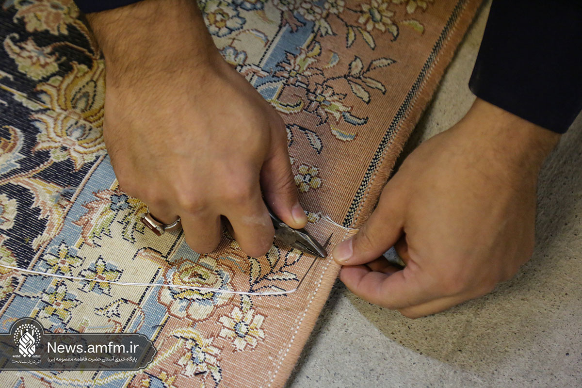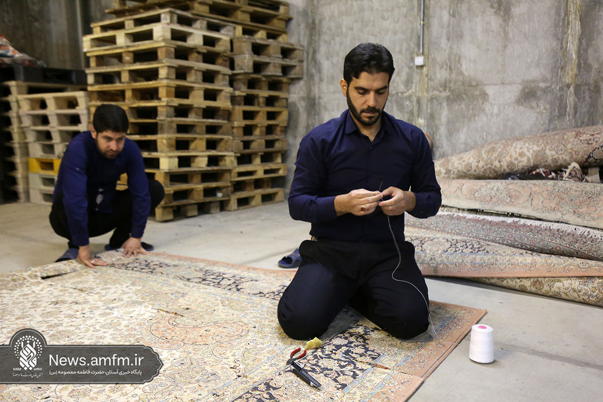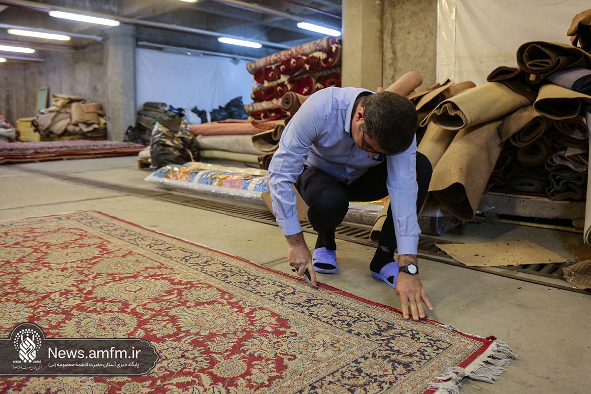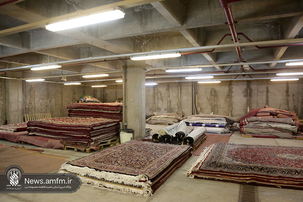 به گزارش پایگاه خبری آستان مقدس حضرت معصومه سلام الله علیها، محمد فخار مسئول واحد فرش آستان مقدس بانوی کرامت در گفتوگویی اظهار کرد: در مجموع این آستان مقدس بیش از ۴ هزار و ۵۰۰ تخته فرش ماشینی و بیش از ۴ هزار متر فرش دستباف دارد که خدمات تعمیر، رفوکاری و نگهداری آن به صورت پیوسته در حال انجام است.