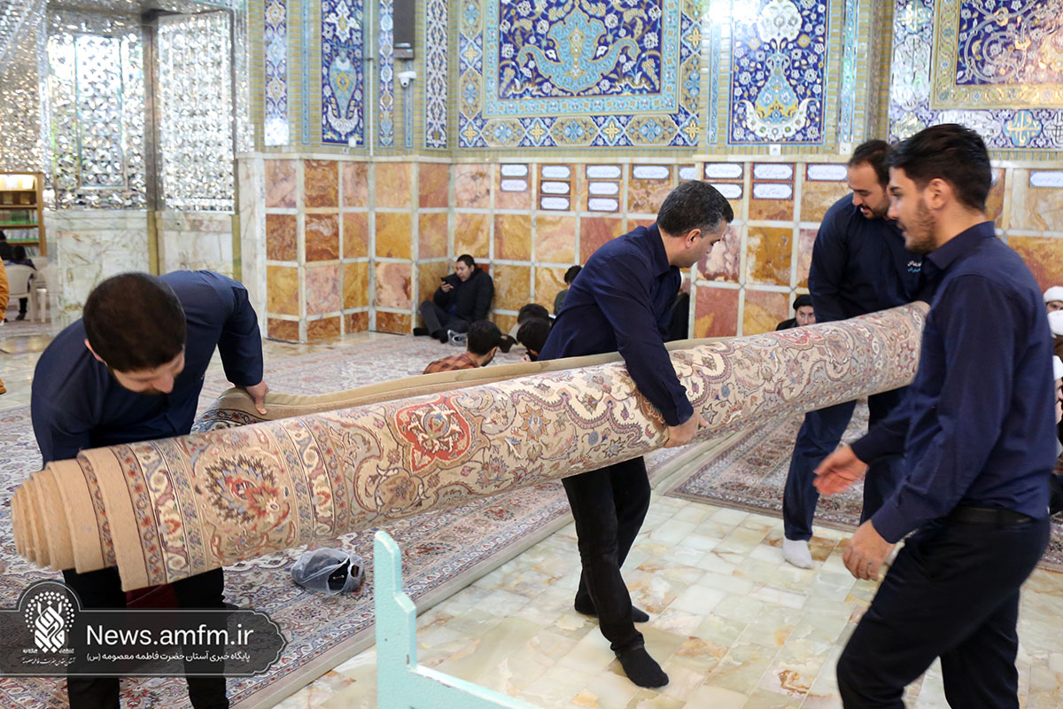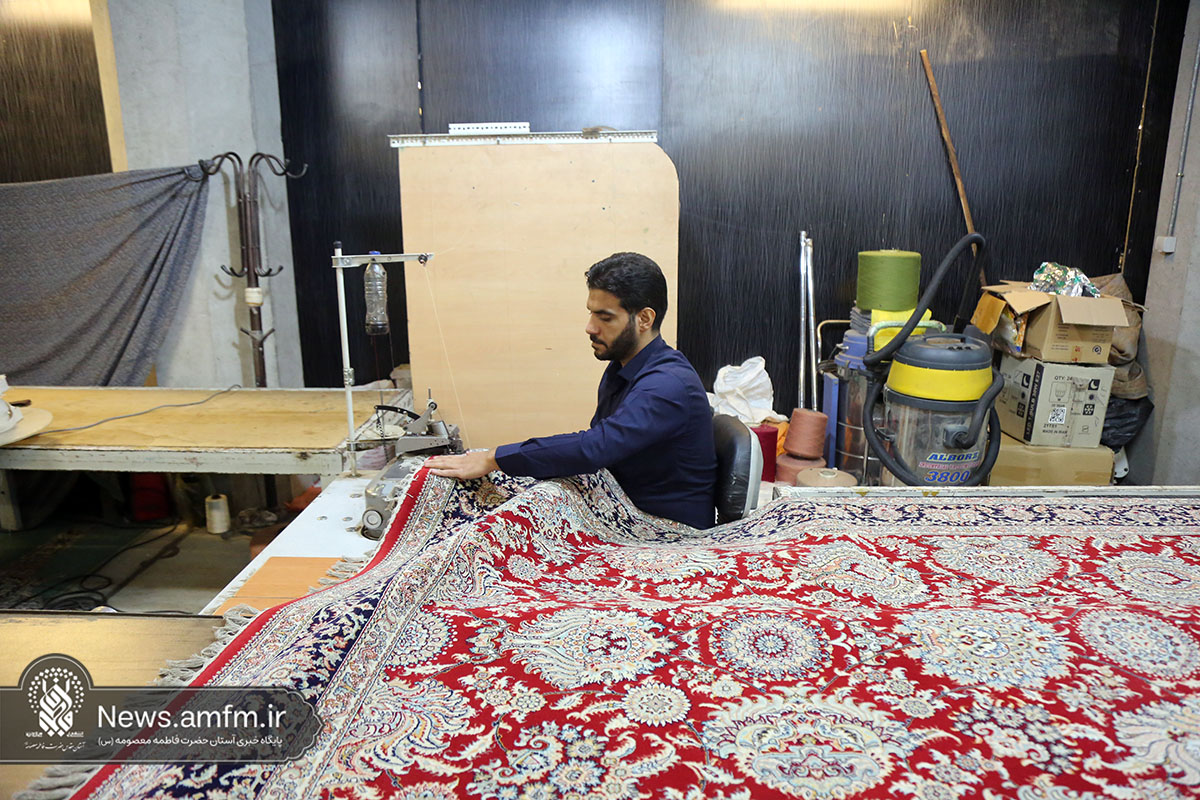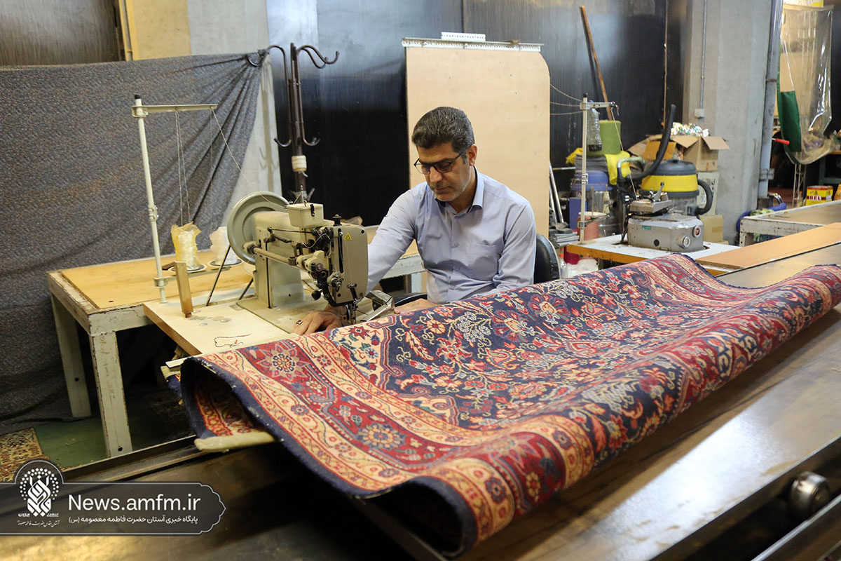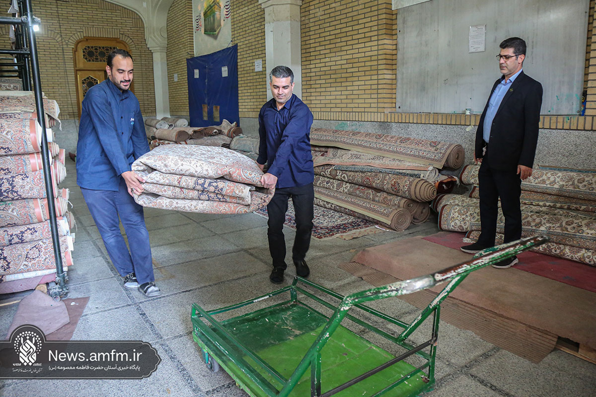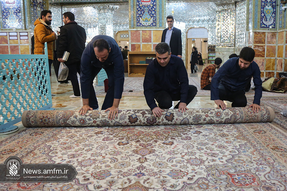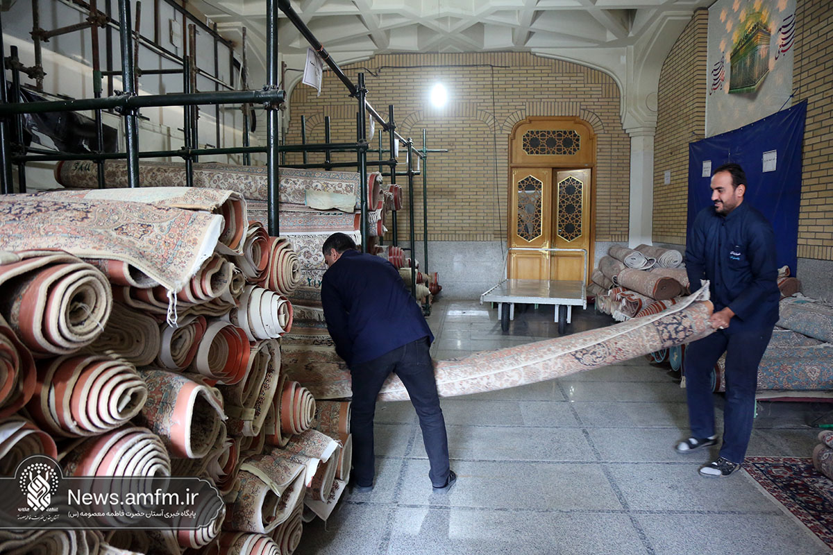 به گزارش پایگاه خبری آستان مقدس حضرت معصومه سلام الله علیها، محمد فخار مسئول واحد فرش آستان مقدس بانوی کرامت در گفتوگویی اظهار کرد: در مجموع این آستان مقدس بیش از ۴ هزار و ۵۰۰ تخته فرش ماشینی و بیش از ۴ هزار متر فرش دستباف دارد که خدمات تعمیر، رفوکاری و نگهداری آن به صورت پیوسته در حال انجام است.