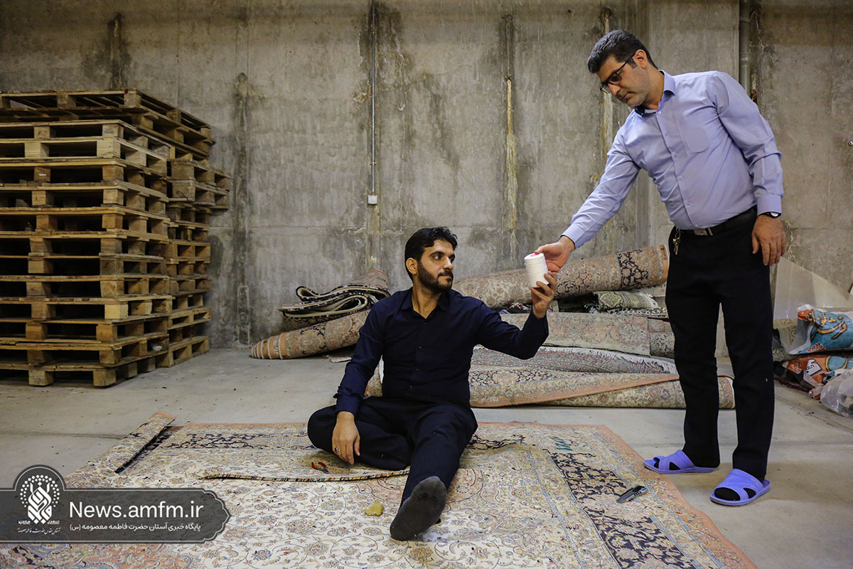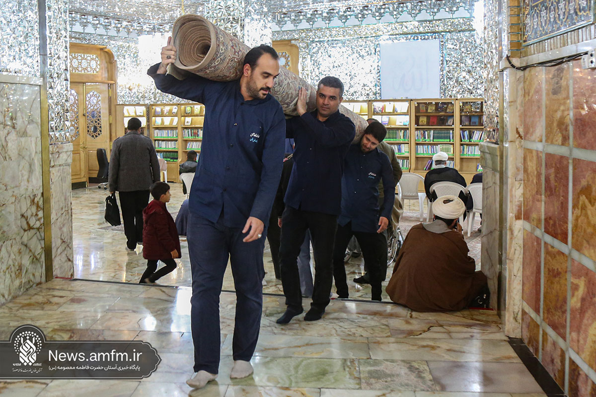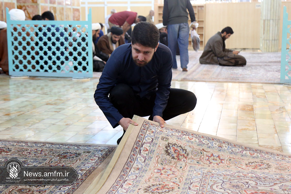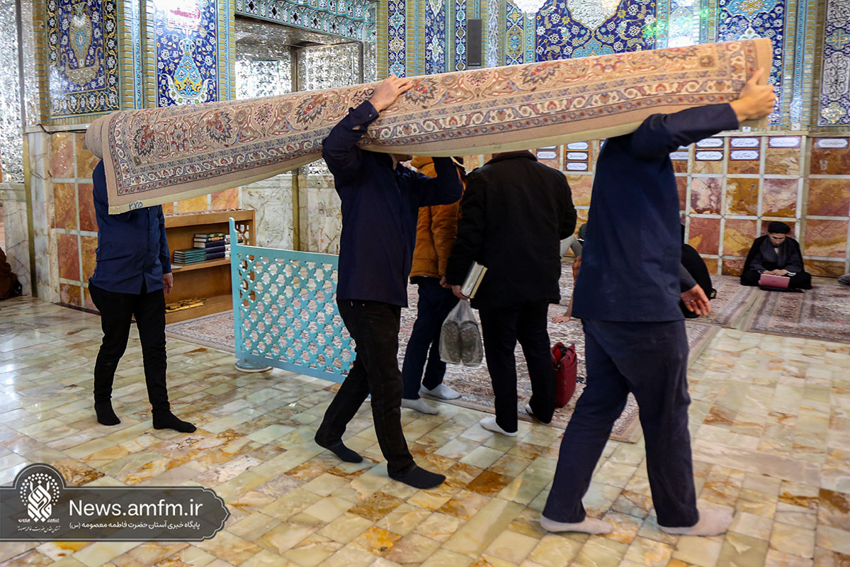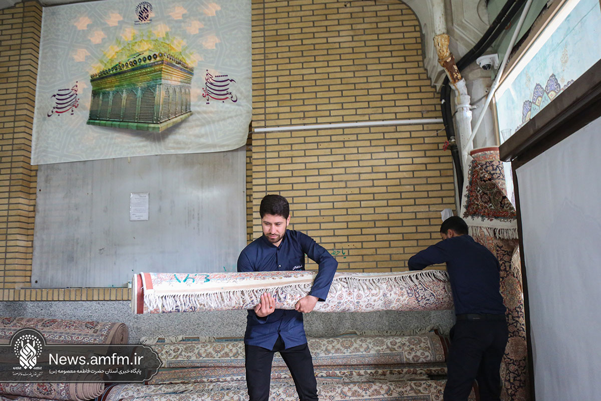 به گزارش پایگاه خبری آستان مقدس حضرت معصومه سلام الله علیها، محمد فخار مسئول واحد فرش آستان مقدس بانوی کرامت در گفتوگویی اظهار کرد: در مجموع این آستان مقدس بیش از ۴ هزار و ۵۰۰ تخته فرش ماشینی و بیش از ۴ هزار متر فرش دستباف دارد که خدمات تعمیر، رفوکاری و نگهداری آن به صورت پیوسته در حال انجام است.